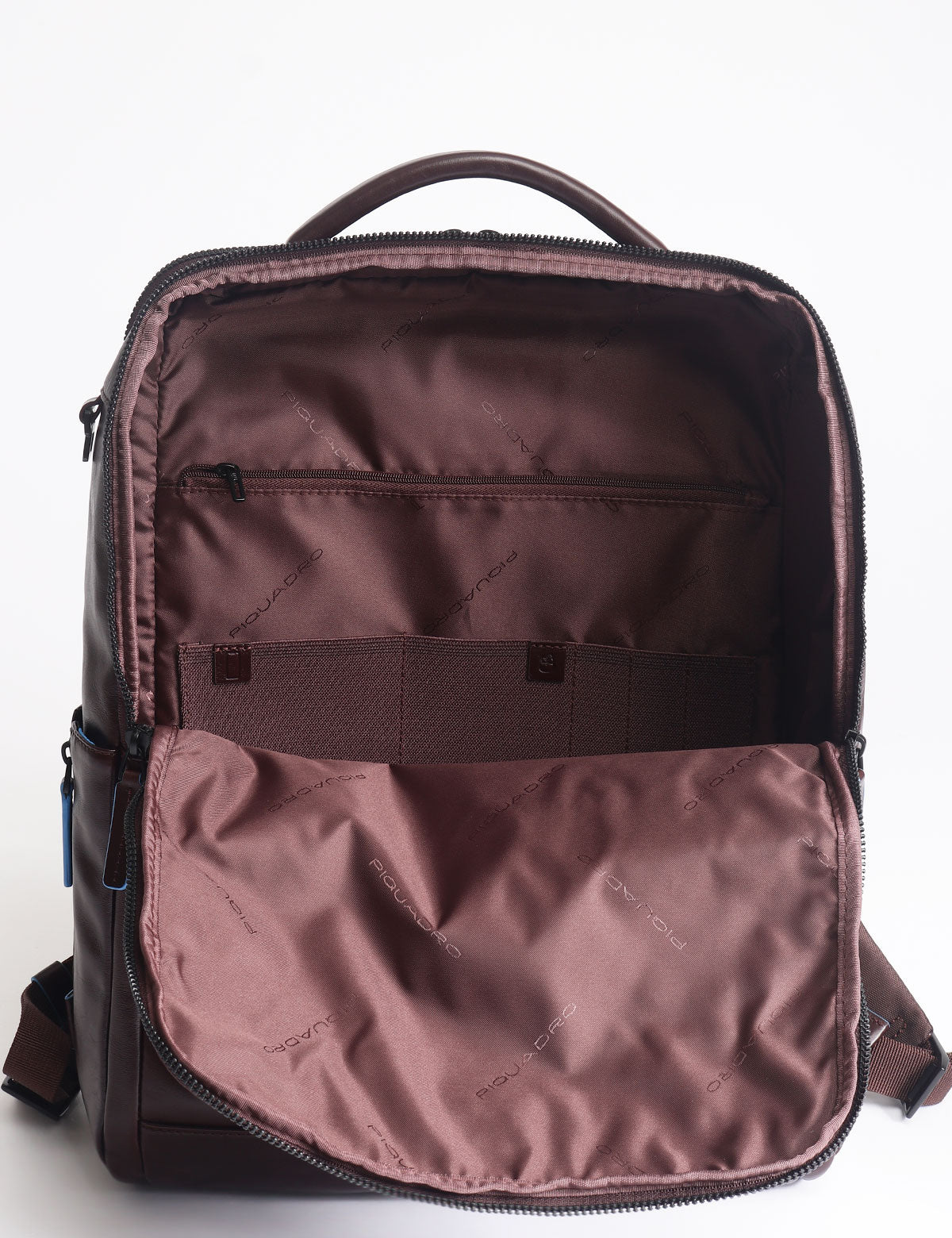 Zaino business Piquadro realizzato in pelle con scomparto porta pc 15.4 pollici e slot porta tablet fino a 11 pollici