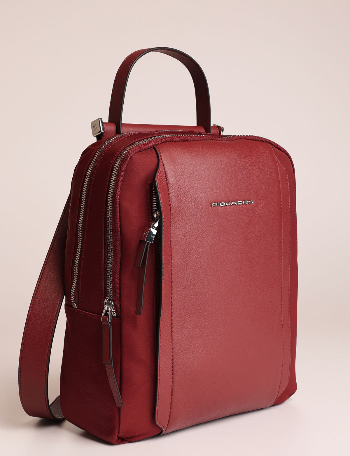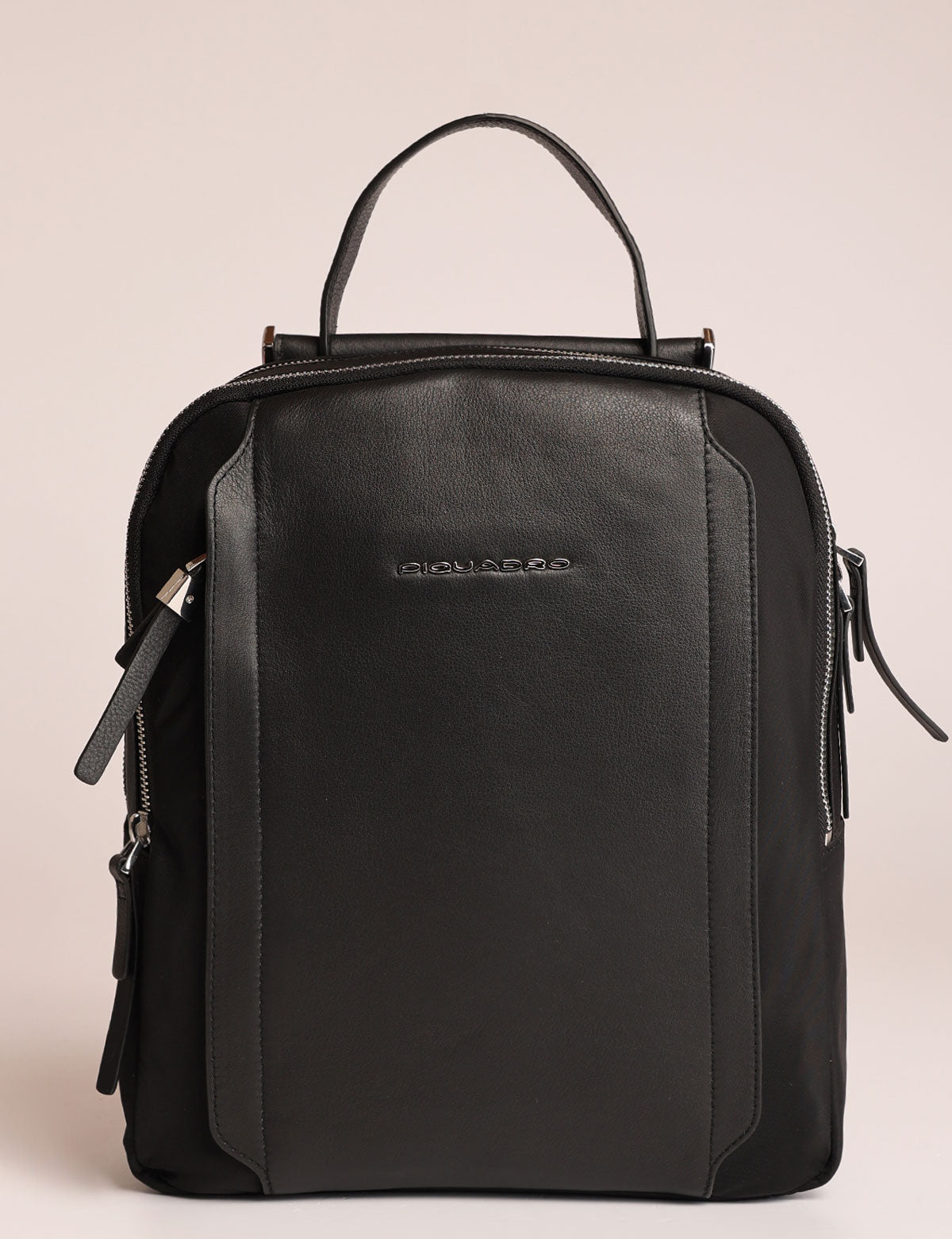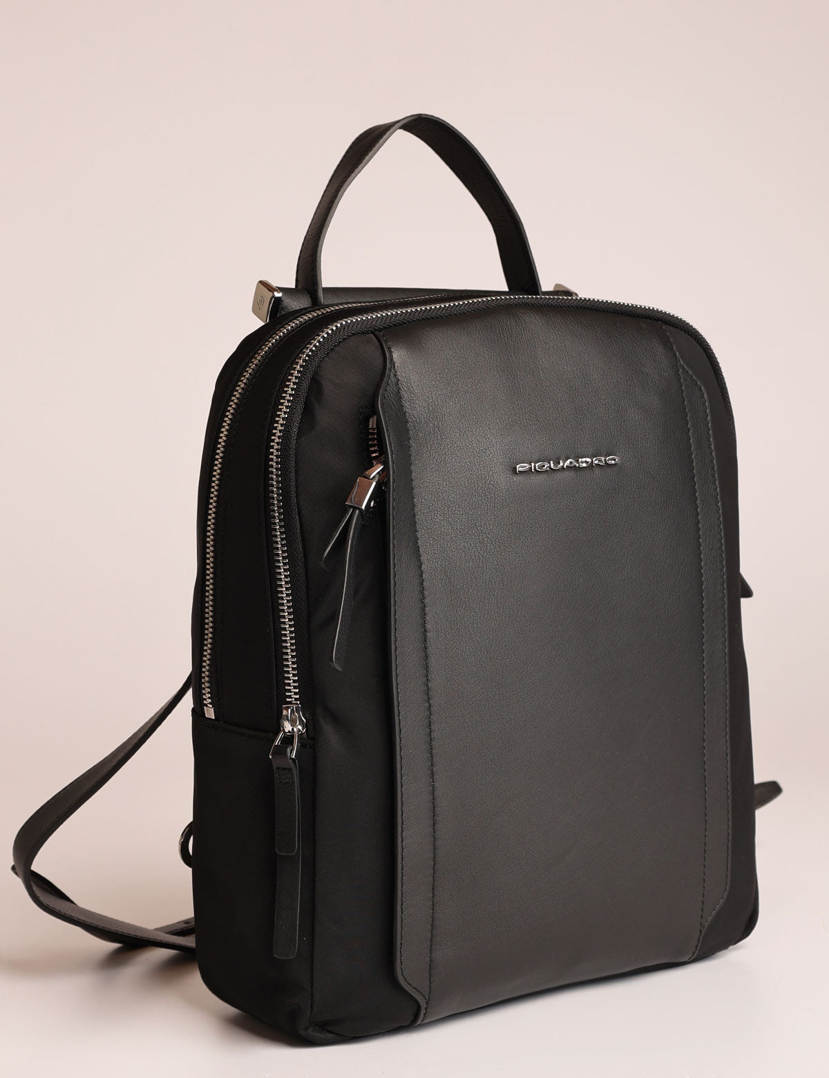 Zaino in tessuto e pelle Piquadro da donna, modello dotato di scomparto porta tablet fino a 12 pollici