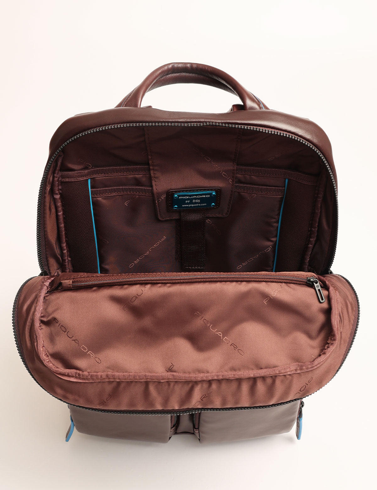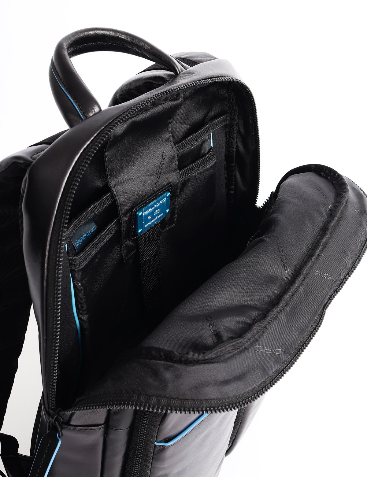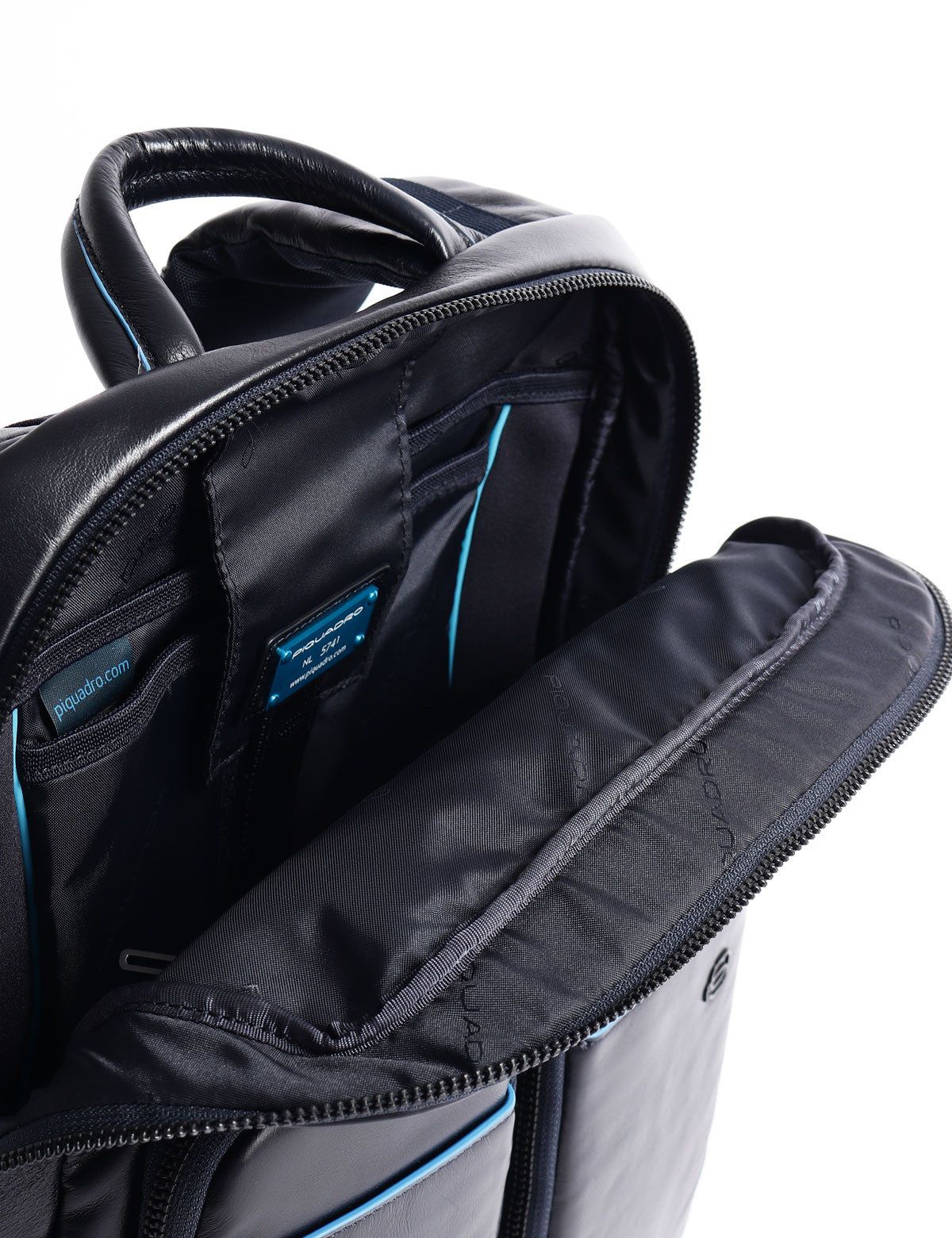 Zaino business Piquadro realizzato in pelle dotato di scomparto interno porta computer e sistema di protezione antifrode RFID