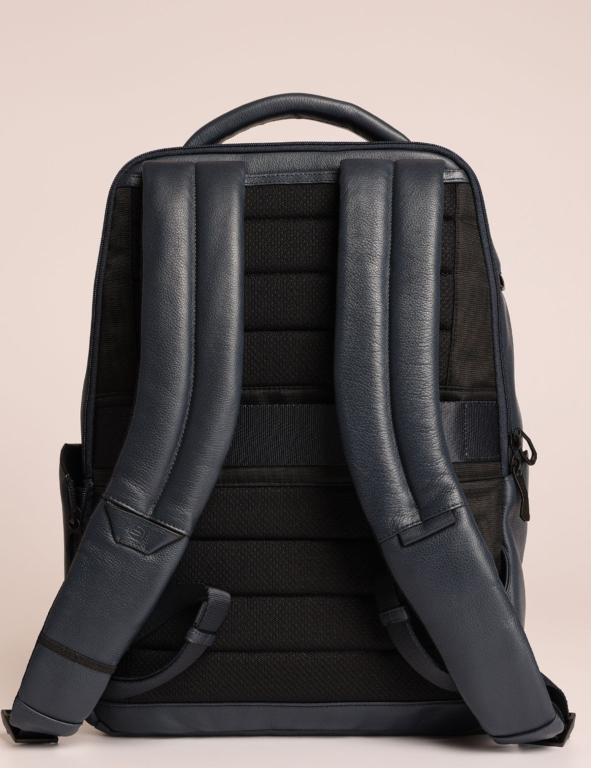 Zaino business Piquadro realizzato in pelle, modello porta pc 14" con scomparto antiurto shock-absorber e sistema di sicurezza con asole per zip