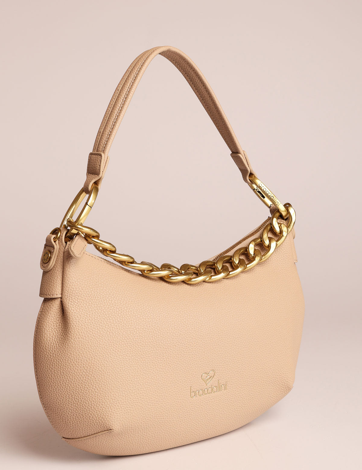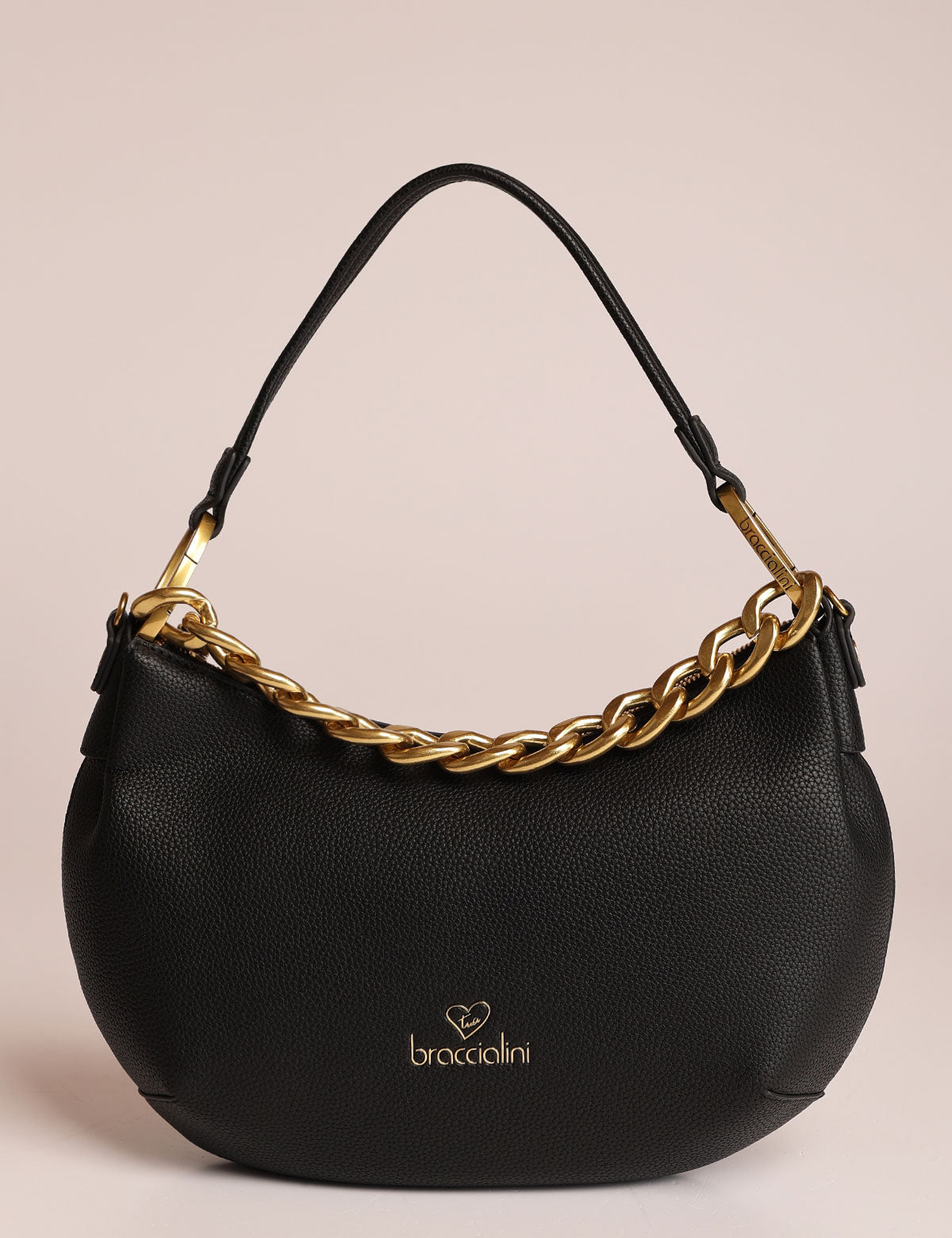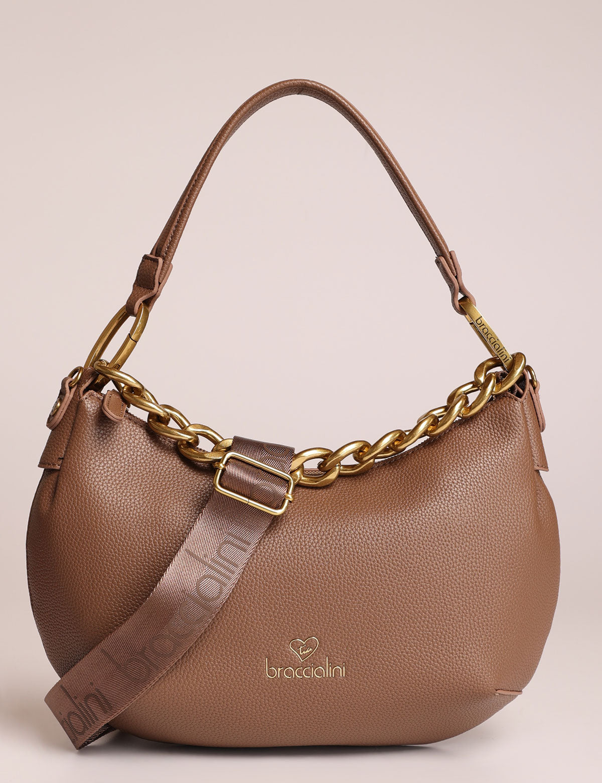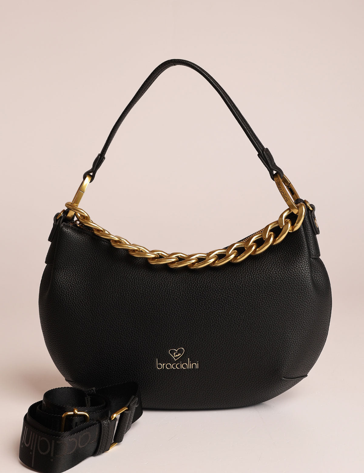 Braccialini women's shoulder bag with classic shoulder strap, one chain strap and logoed fabric shoulder strap