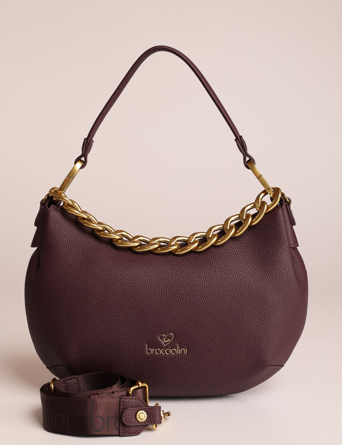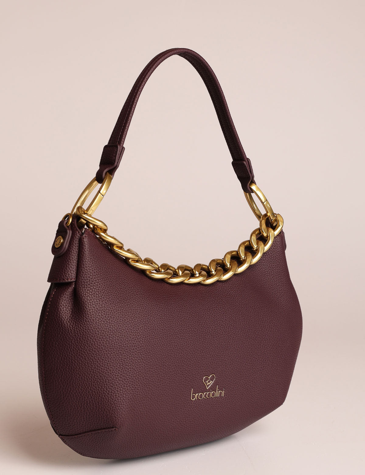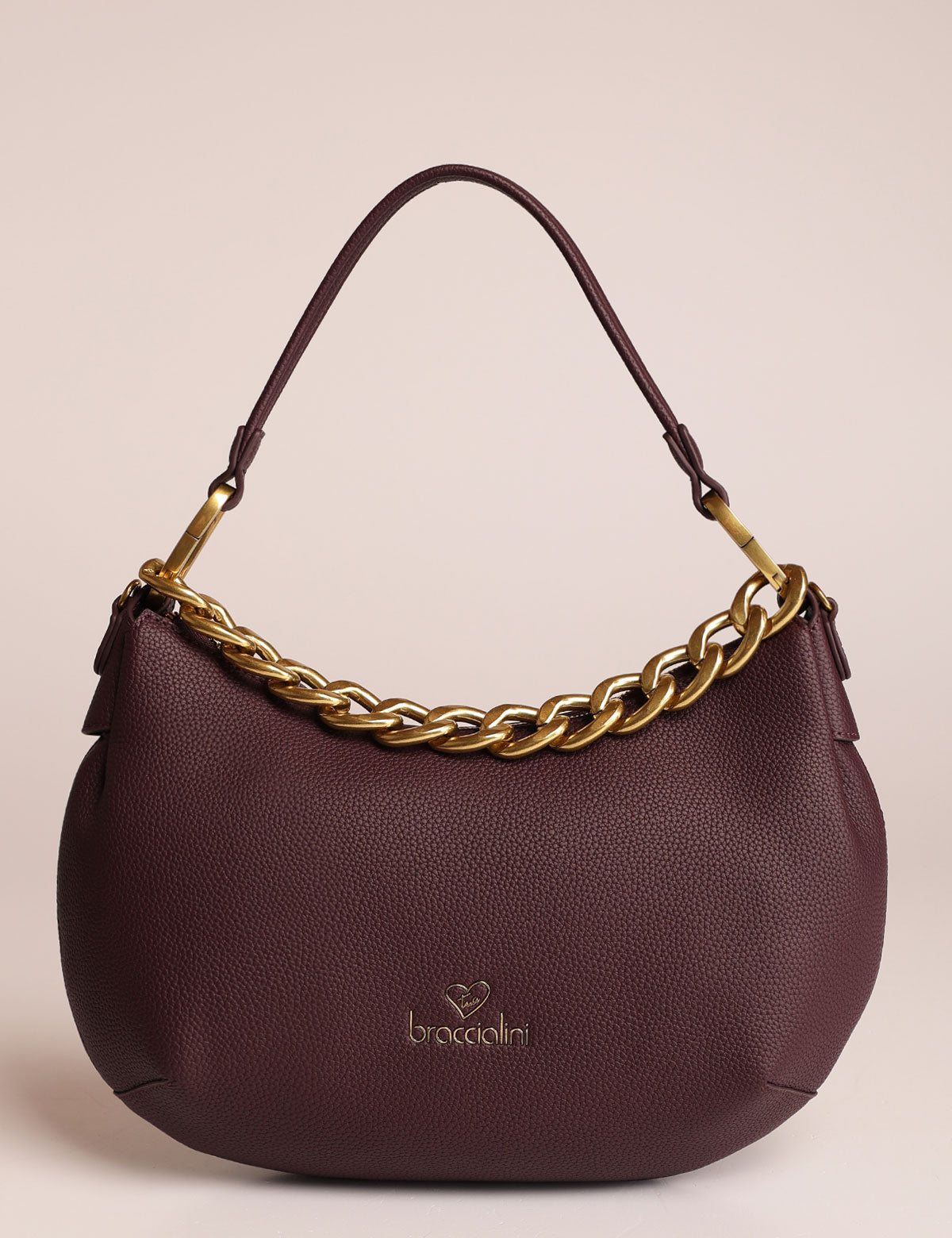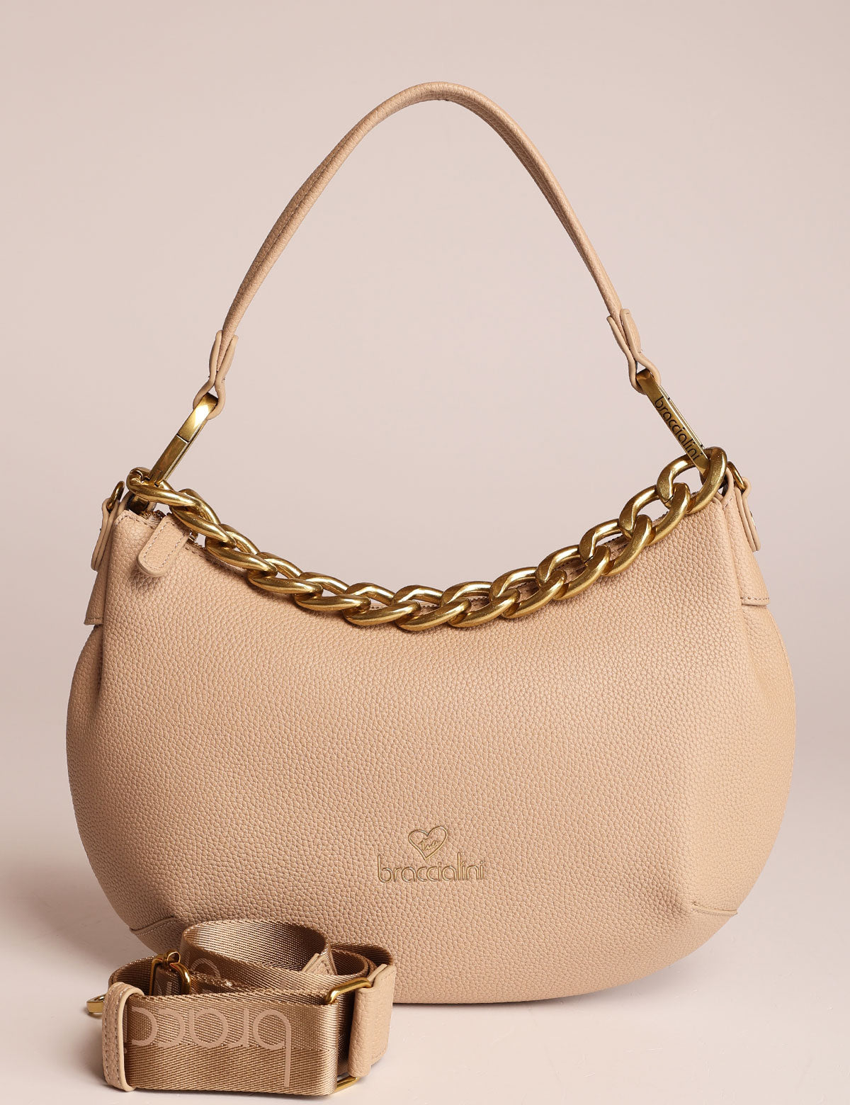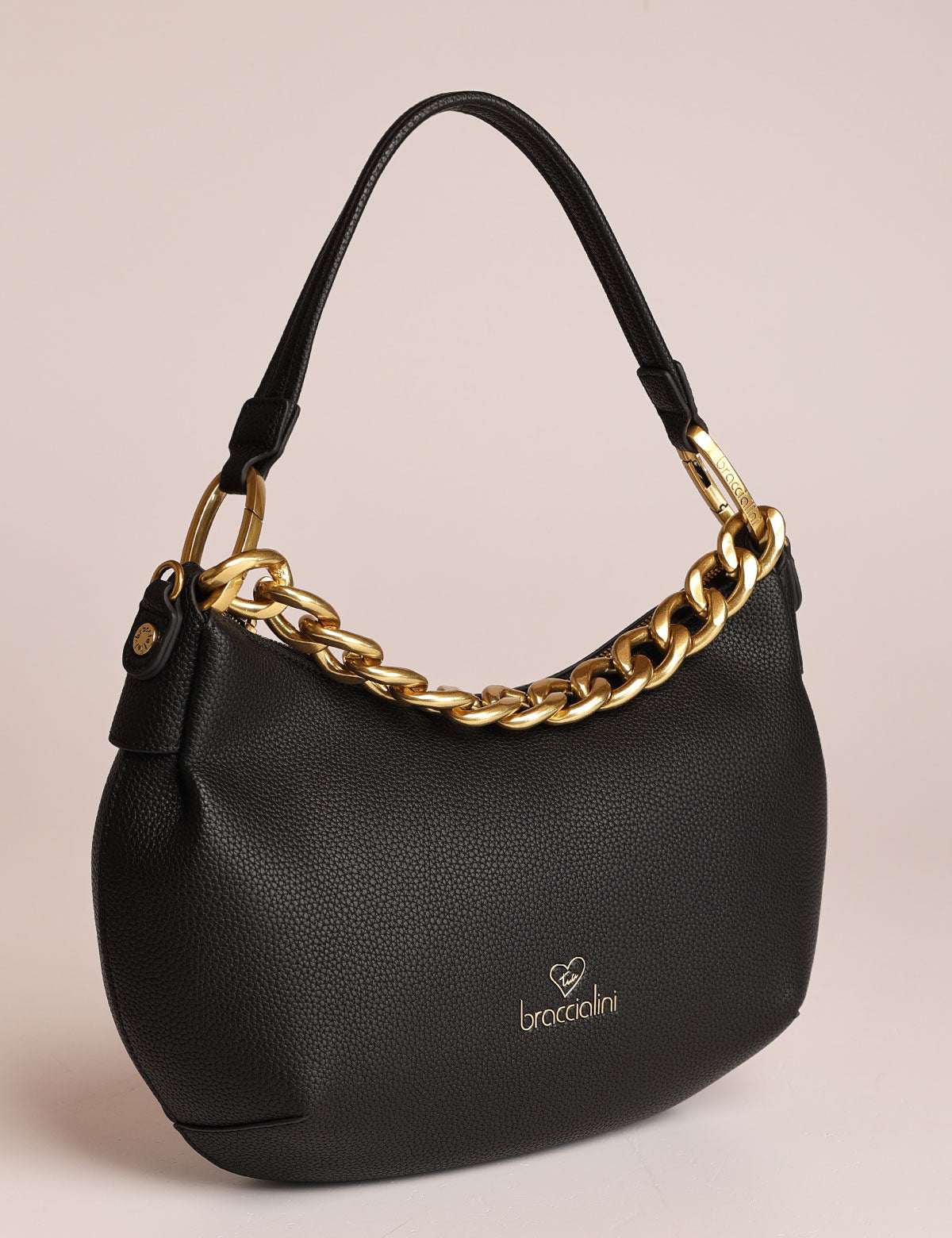 Braccialini women's shoulder bag with classic shoulder strap, one chain strap and logoed fabric shoulder strap