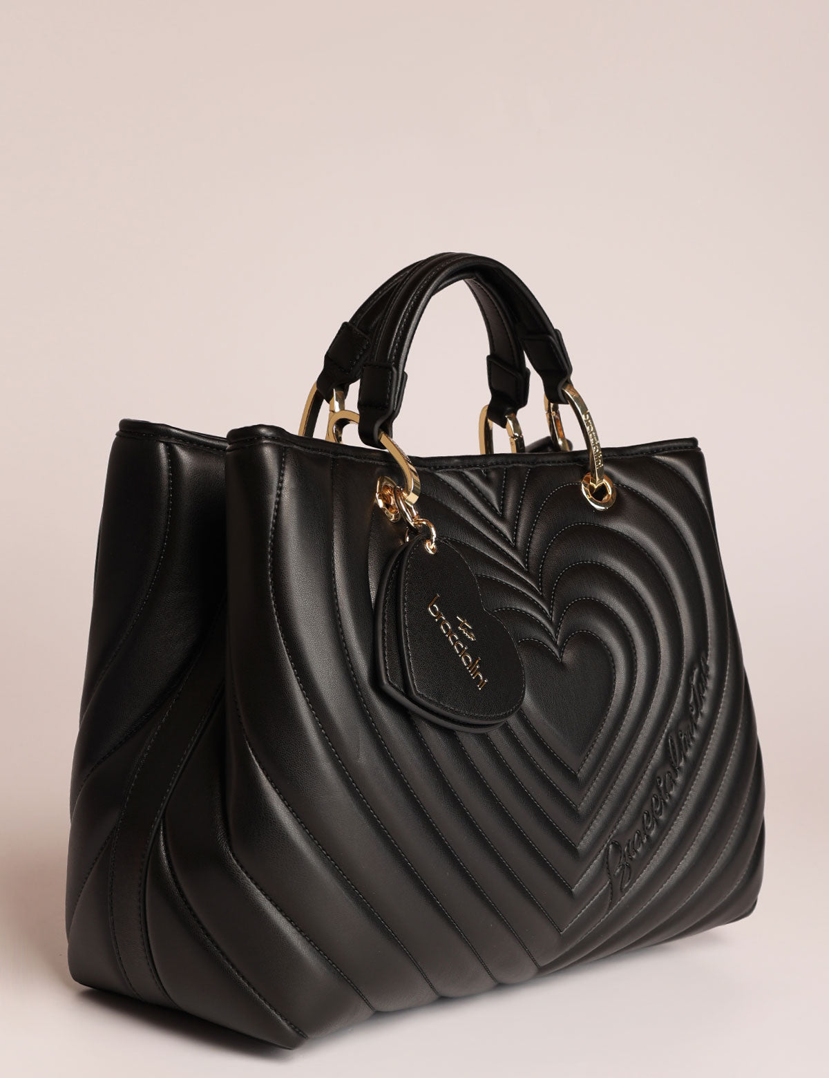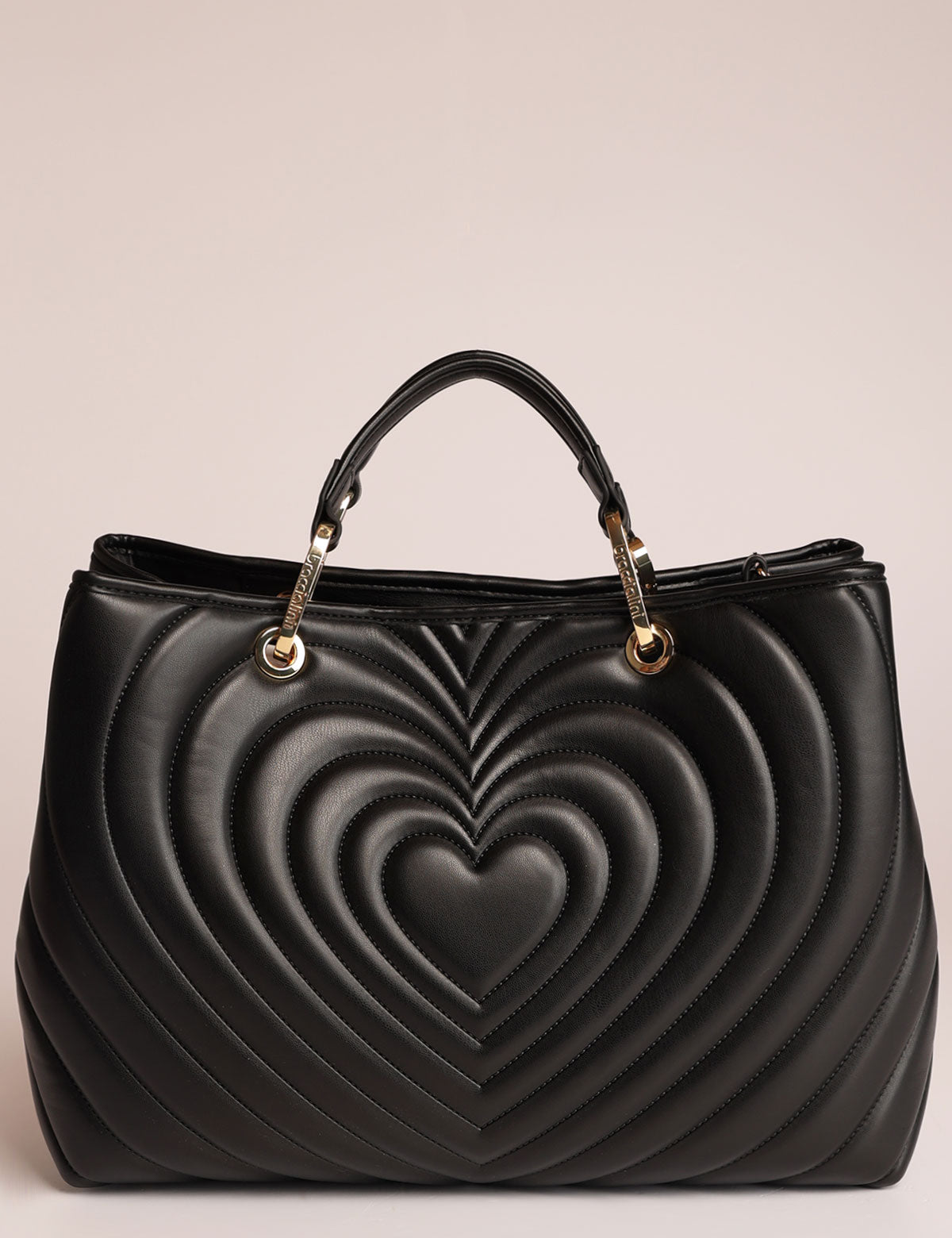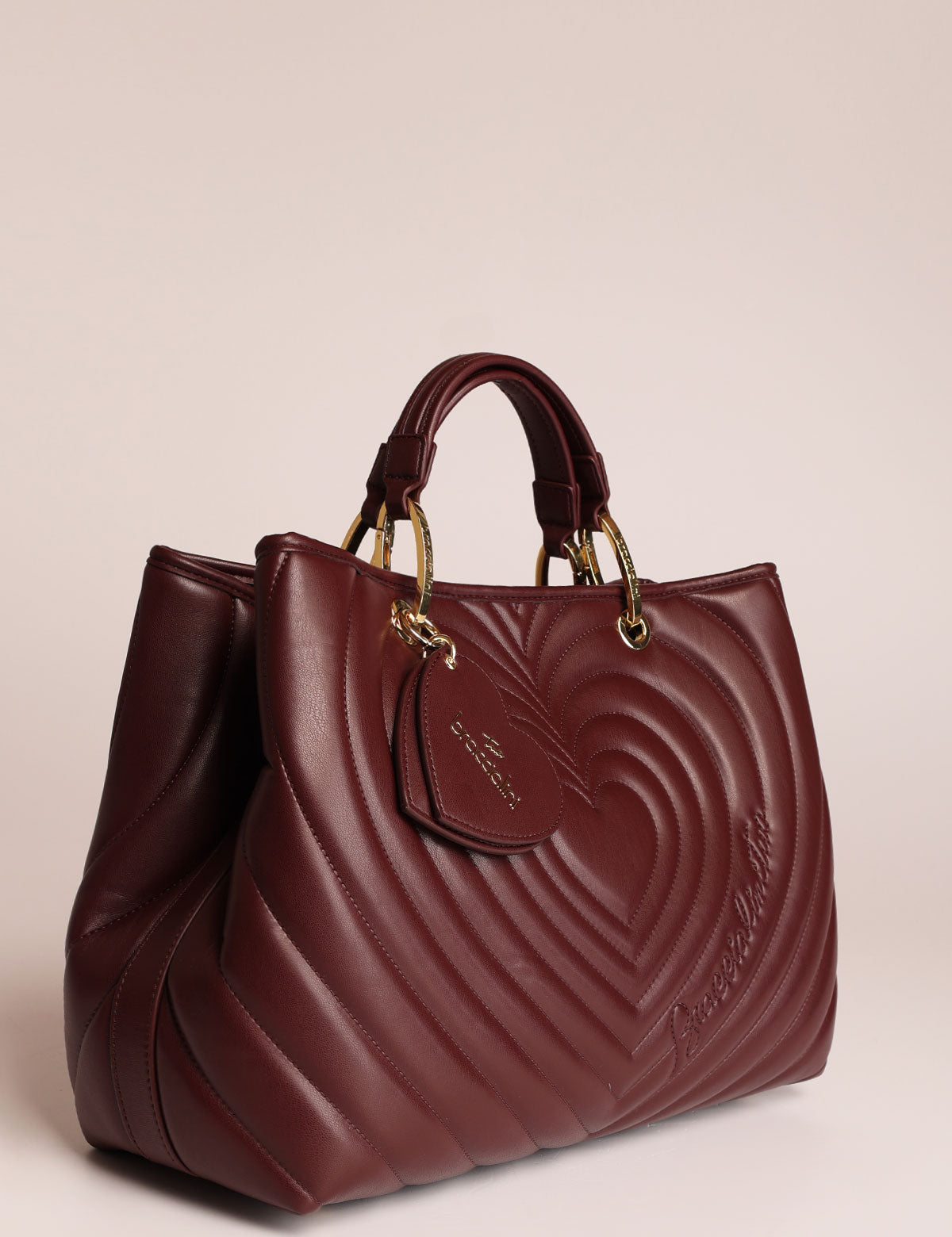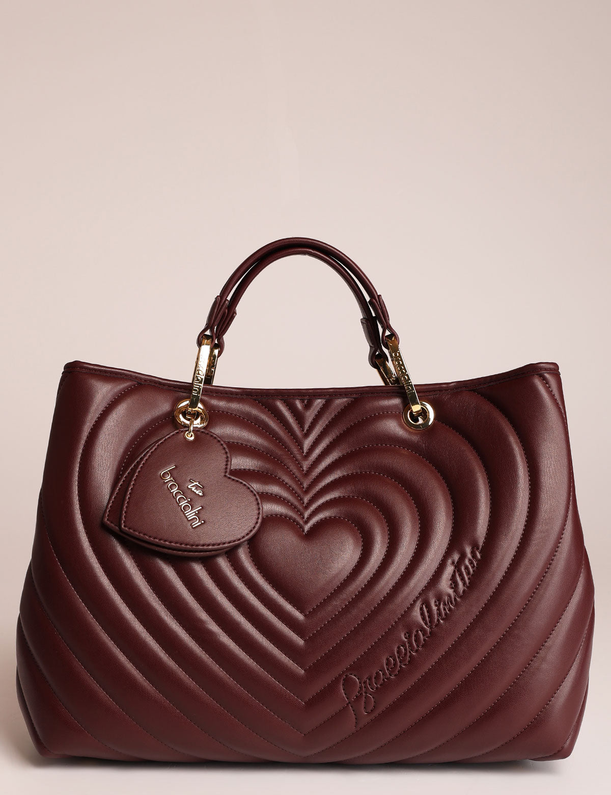 Braccialini women's bag with a distinctive quilted finish and a heart-shaped charm with a mirror. This model features an internal pouch that can also be used as a separate shoulder bag.