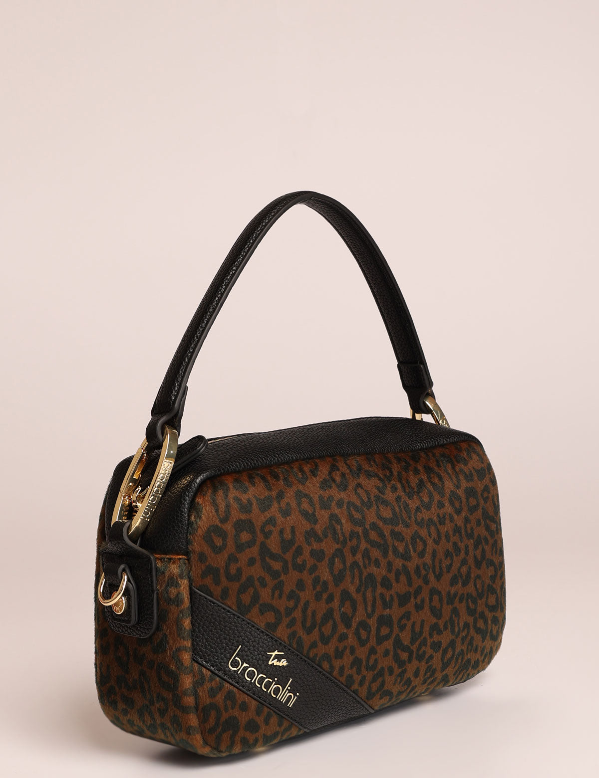 Borsa da donna Braccialini con spallaccio superiore e tracolla, modello con esterno effetto animalier