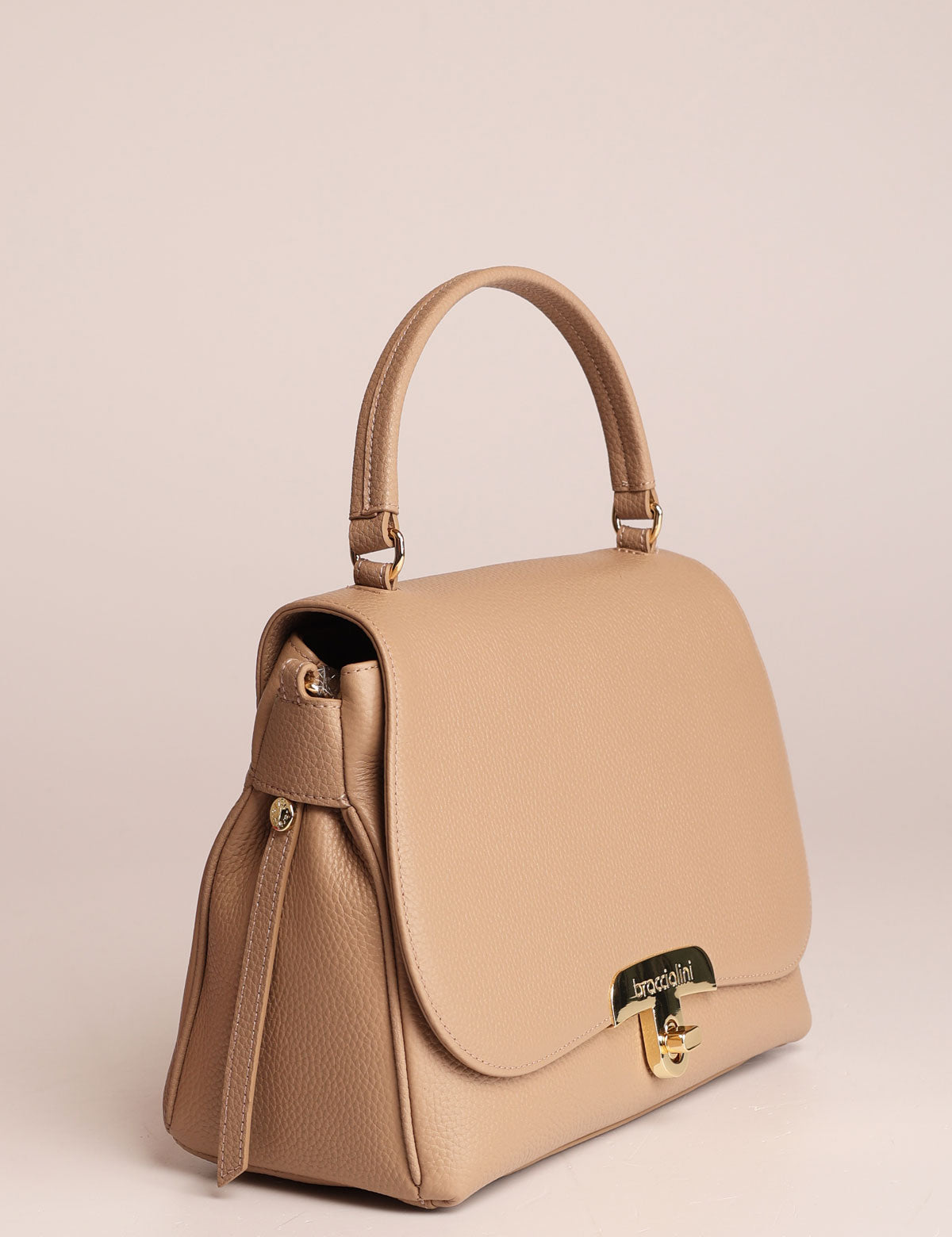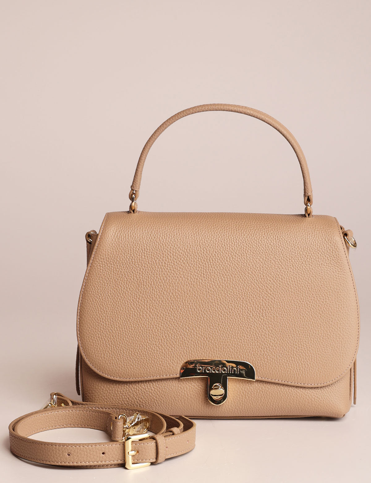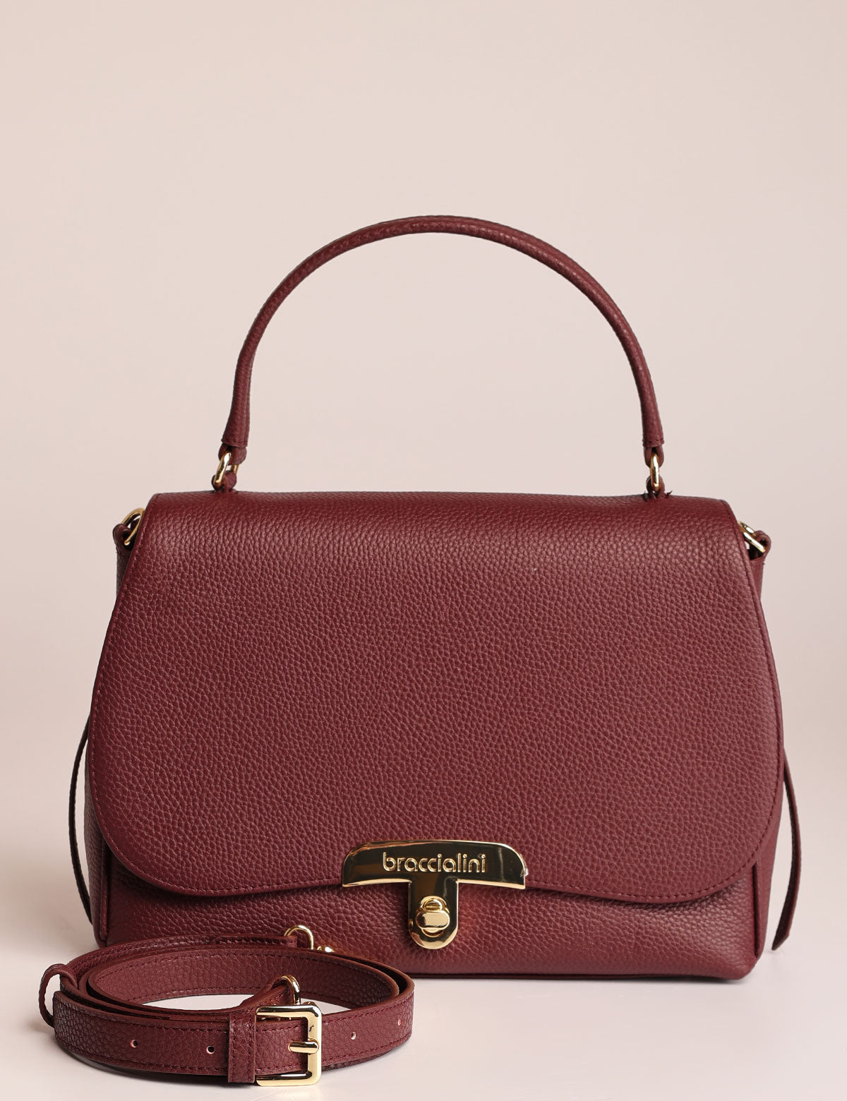 Braccialini women's leather bag, hand model with top handle and shoulder strap for carrying on the shoulder