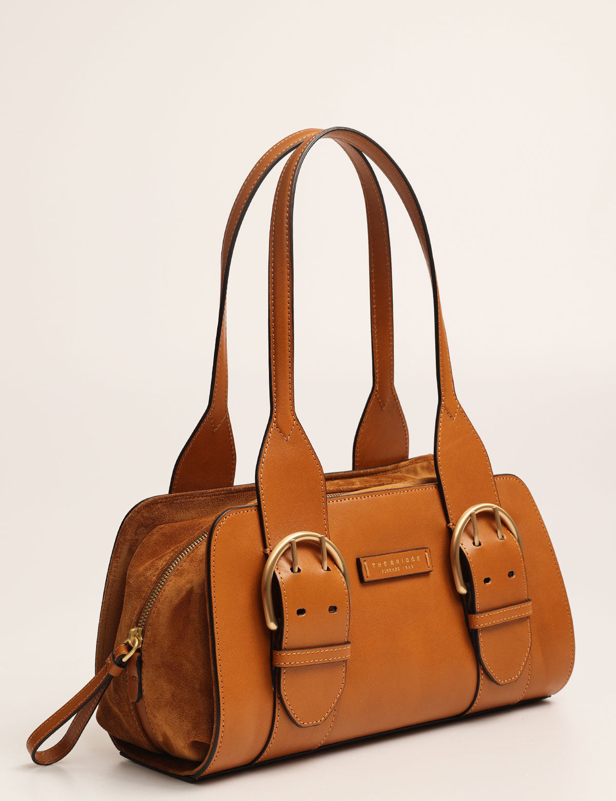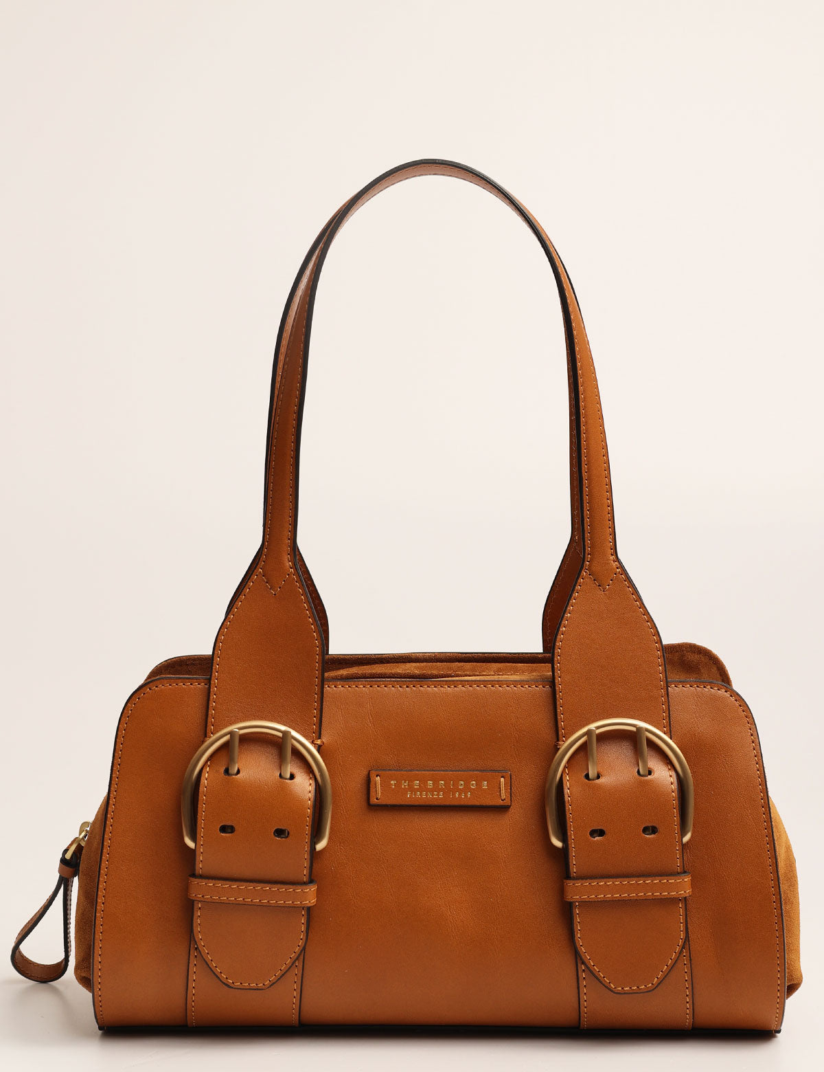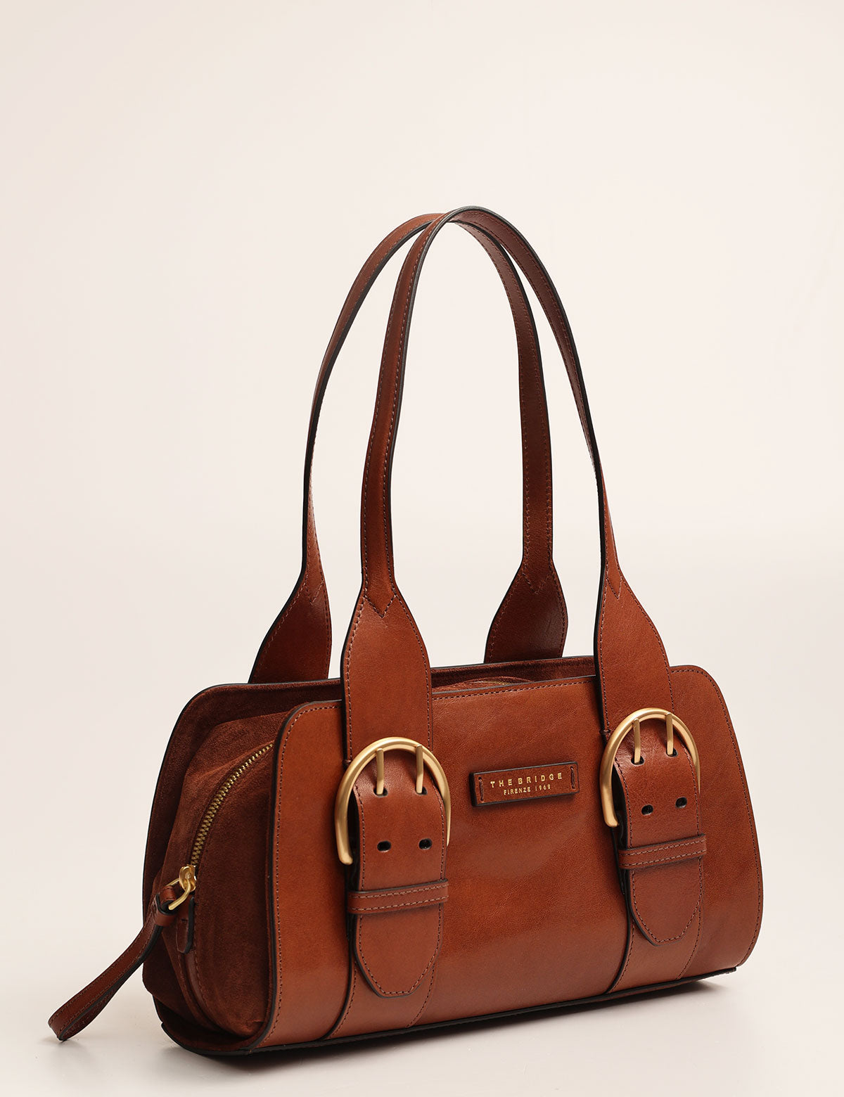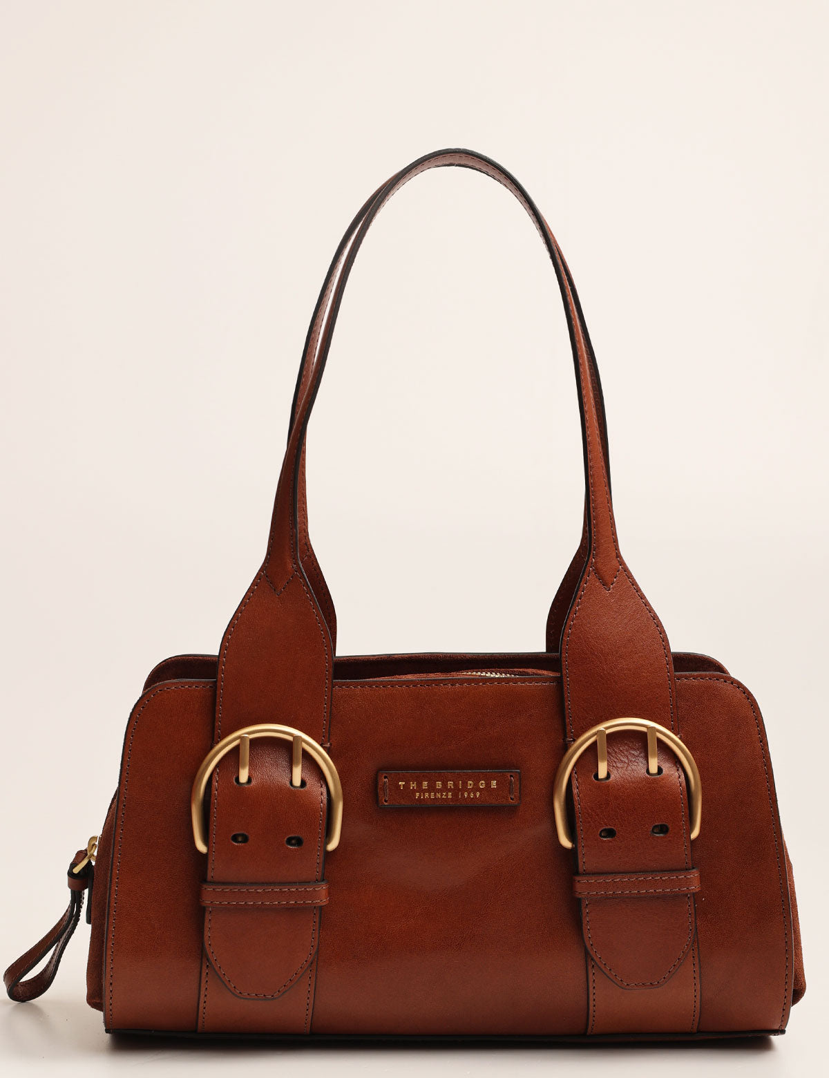 The Bridge women's bag model with two long handles decorated with two round buckles