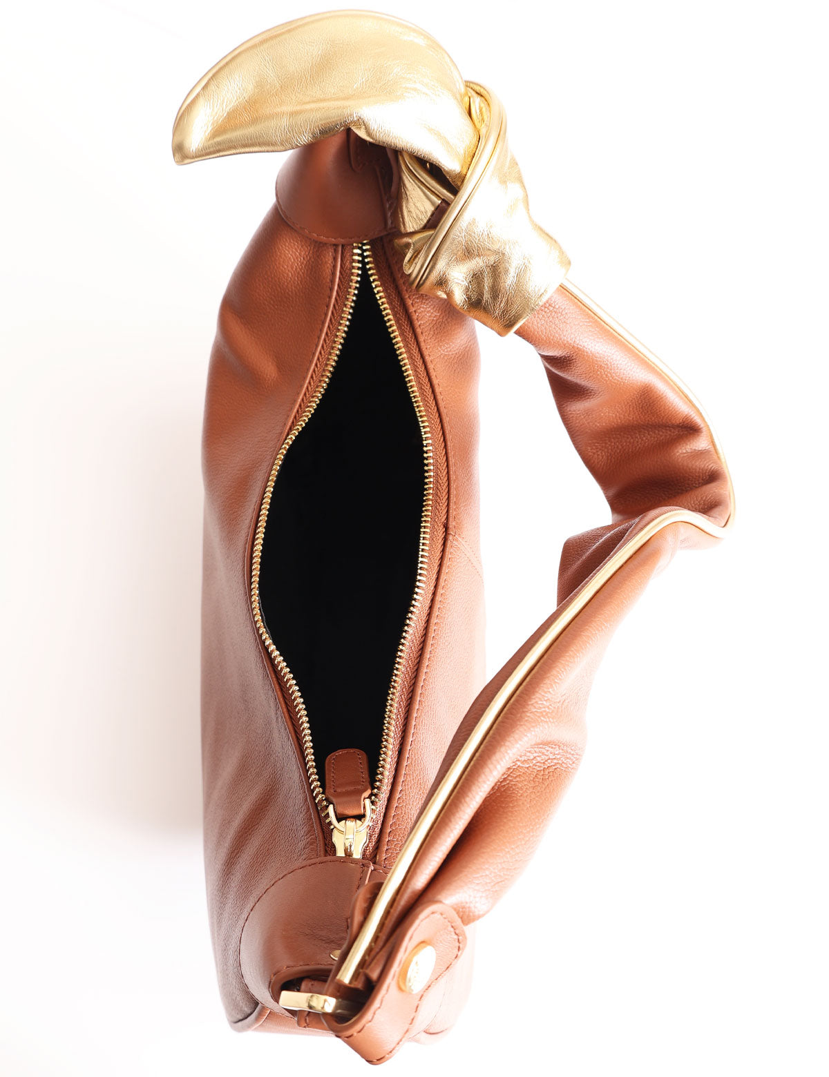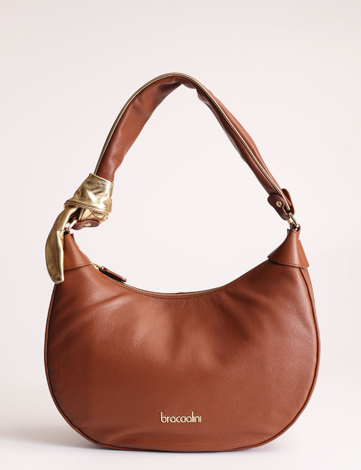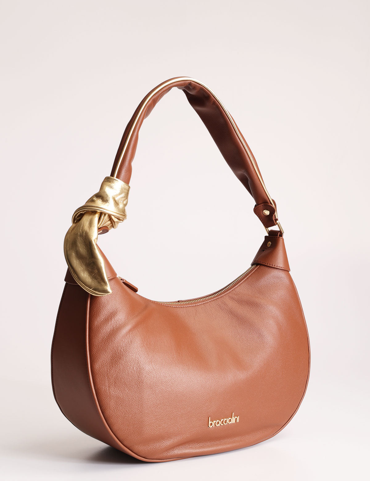 The soft leather of the Greta line by Braccialini is enriched by a refined knot on the gold-coloured handle.