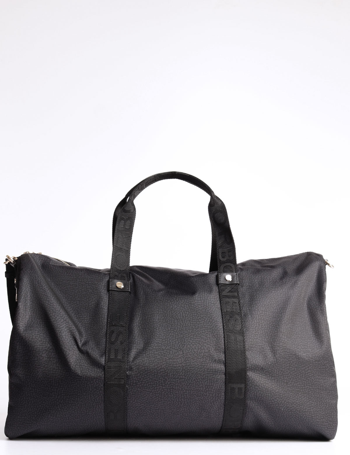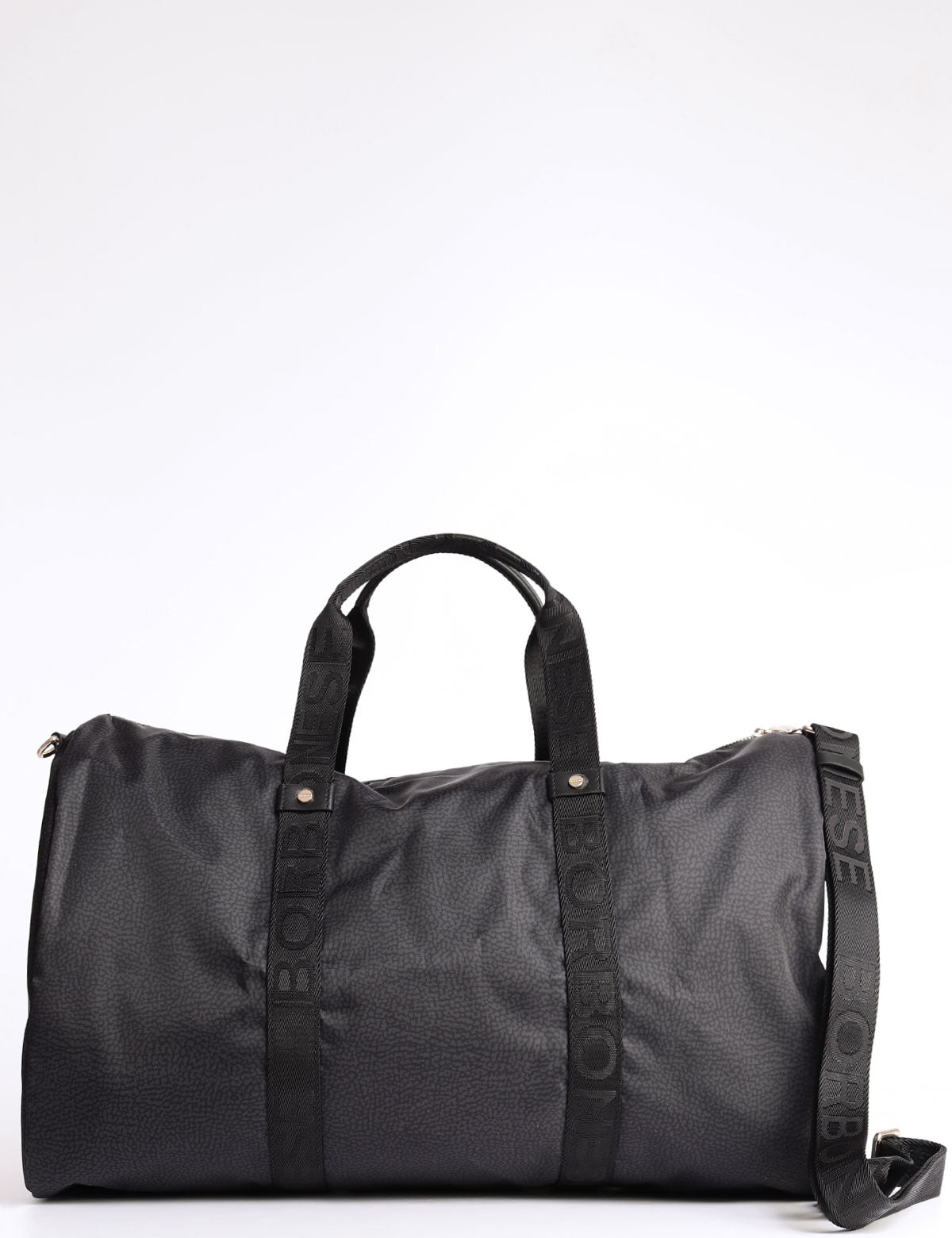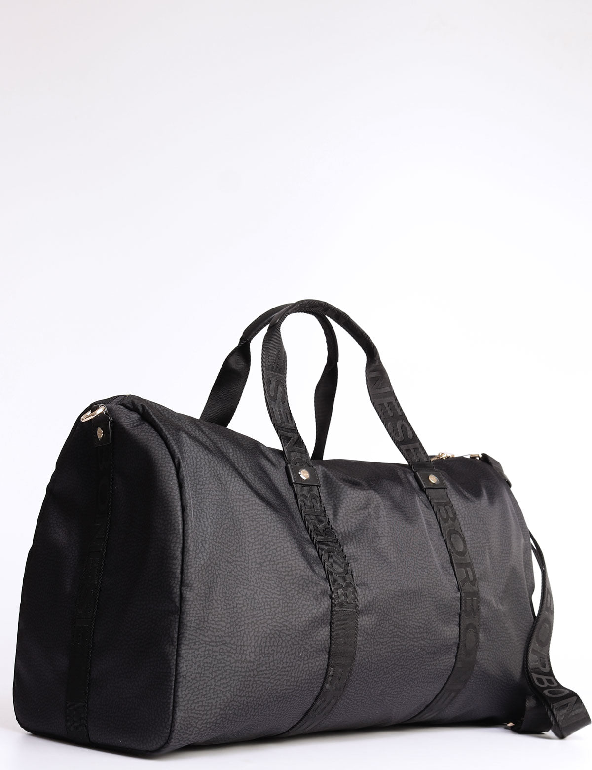 Borbonese travel bag made of recycled fabric, equipped with practical handles and shoulder strap