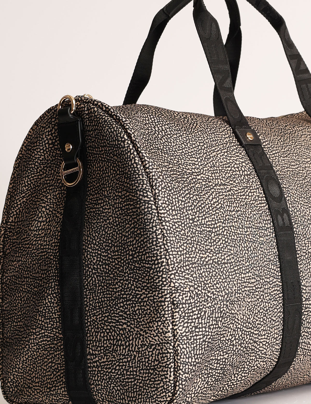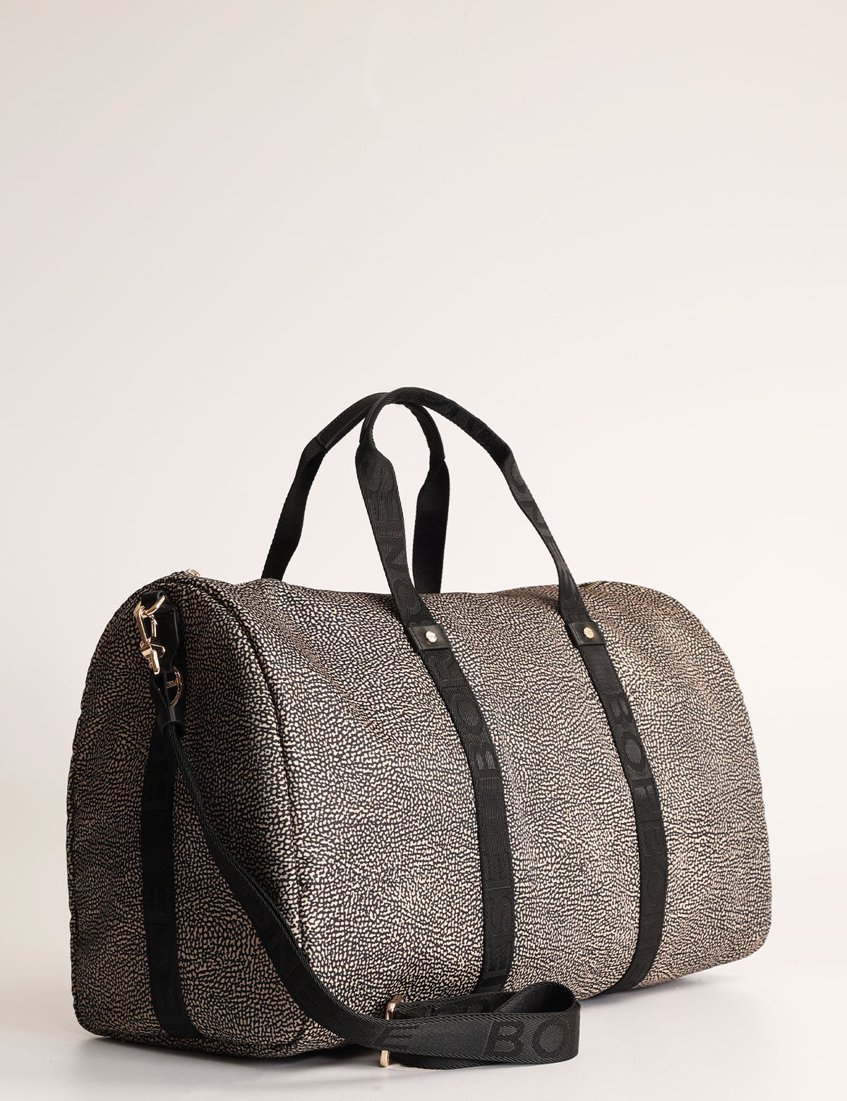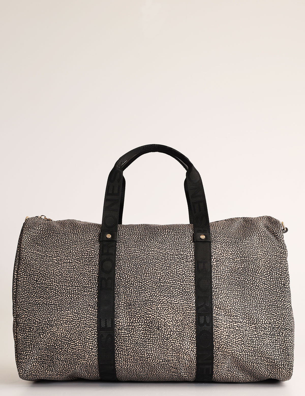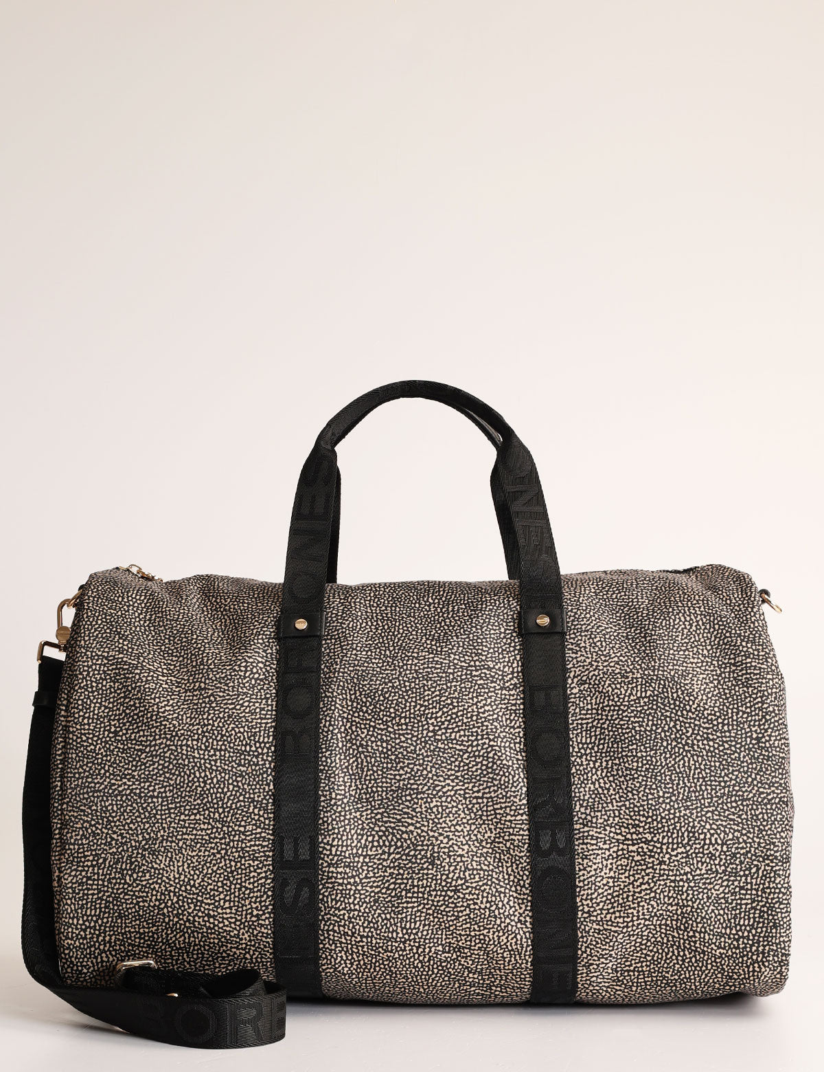 Borbonese travel bag made of recycled fabric, equipped with practical handles and shoulder strap