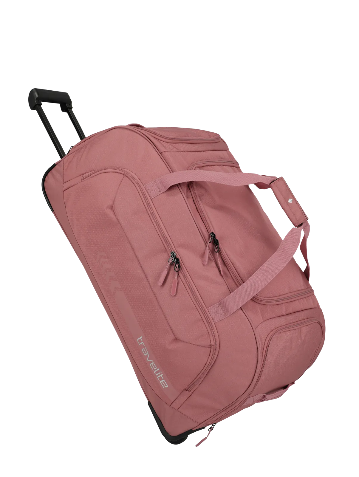 Travelite large, hold-able travel bag with two wheels and a pull handle for added trolley-like portability