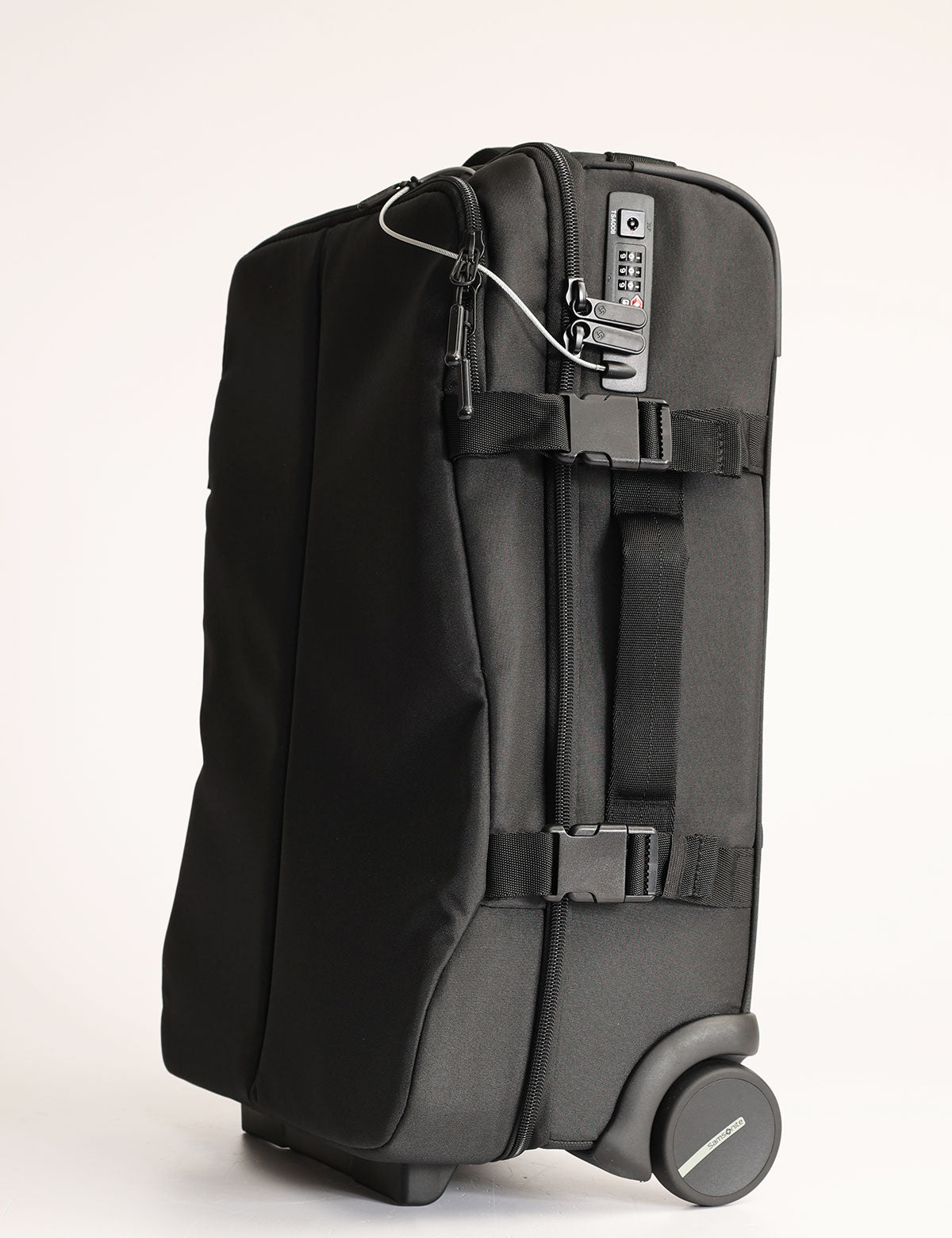 Samsonite carry-on luggage model with two integrated wheels. Model made with recycled materials