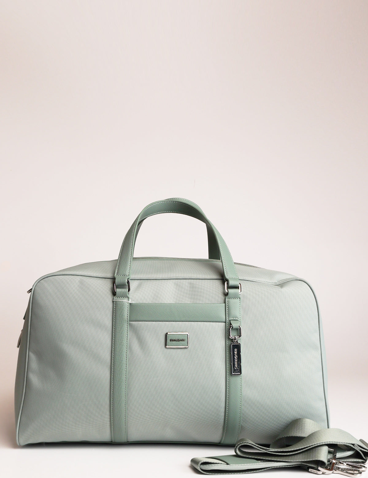 Samsonite travel bag with handles, shoulder strap, and trolley strap. Cabin-sized.