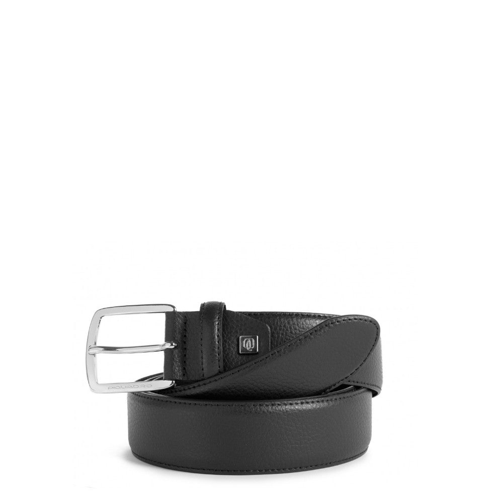 Piquadro men's belt made of soft hammered leather with square-shaped chrome-plated steel buckle