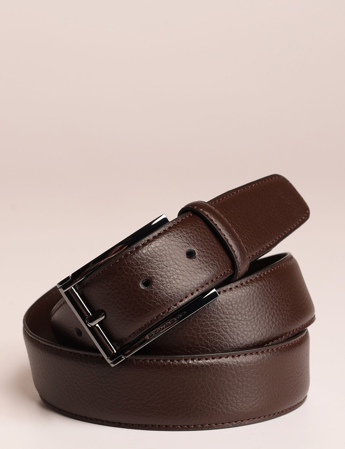 Piquadro men's belt made of hammered leather with gunmetal metal hardware. Height: 3.5 cm.