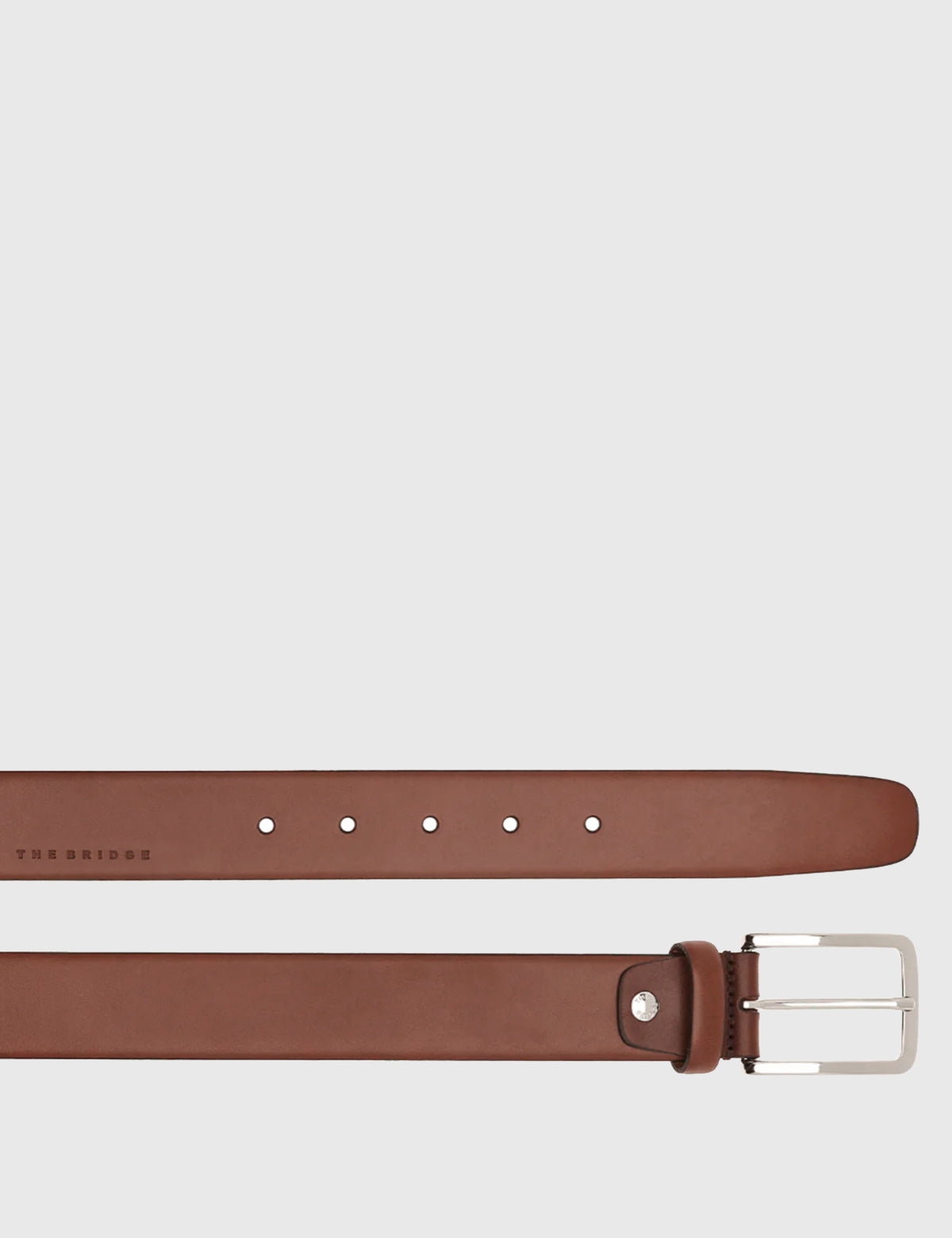 The Bridge men's belt made of leather with raw cut edges and rounded buckle. Height 3.5 cm