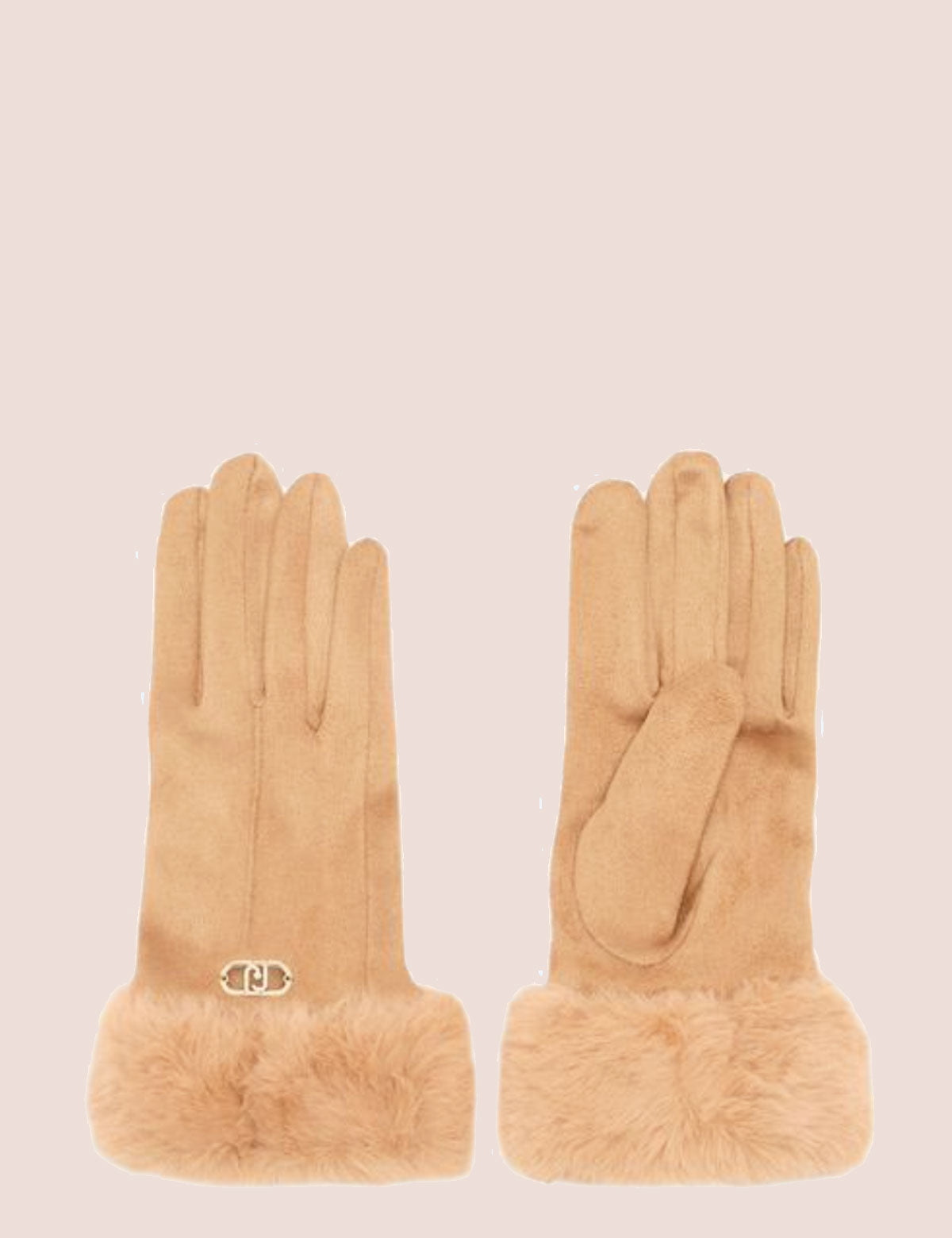 Liu Jo women's gloves with metal logo detail and faux fur cuff