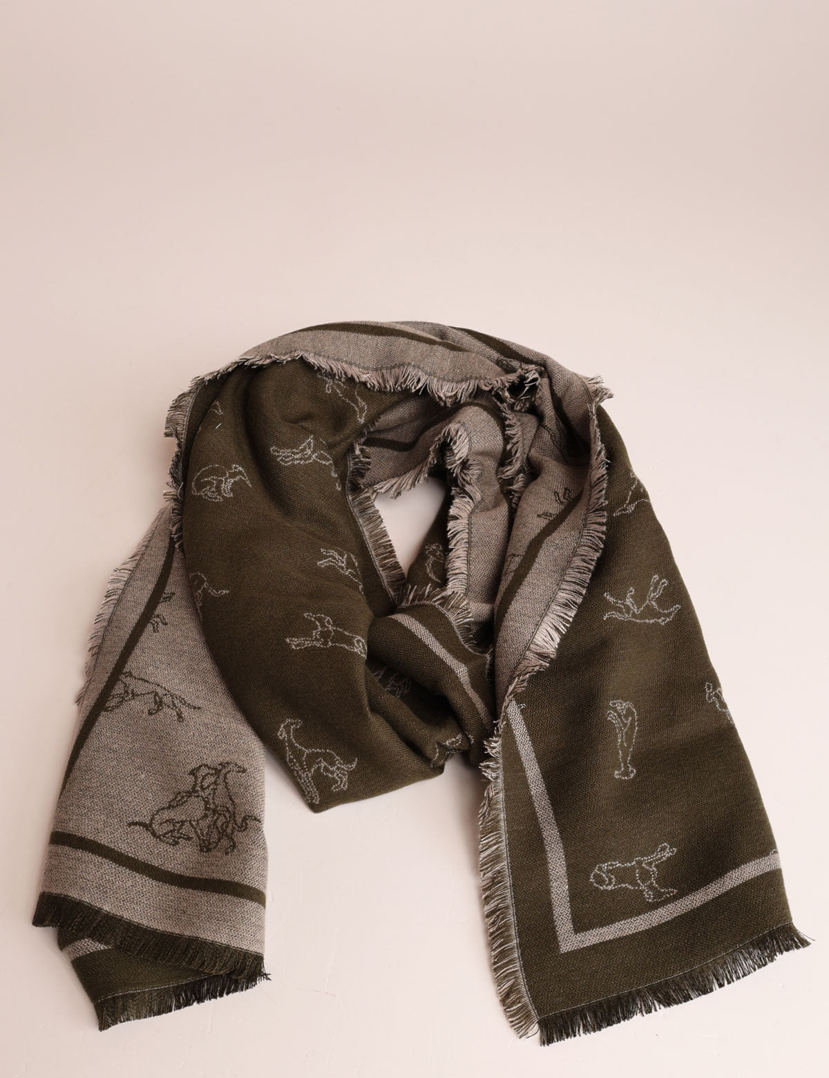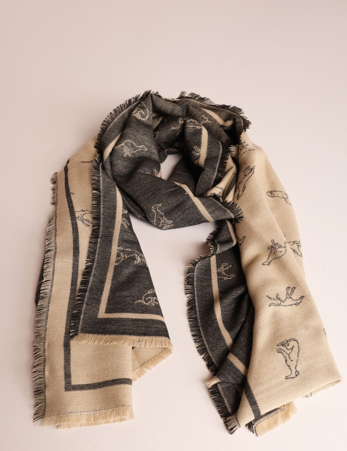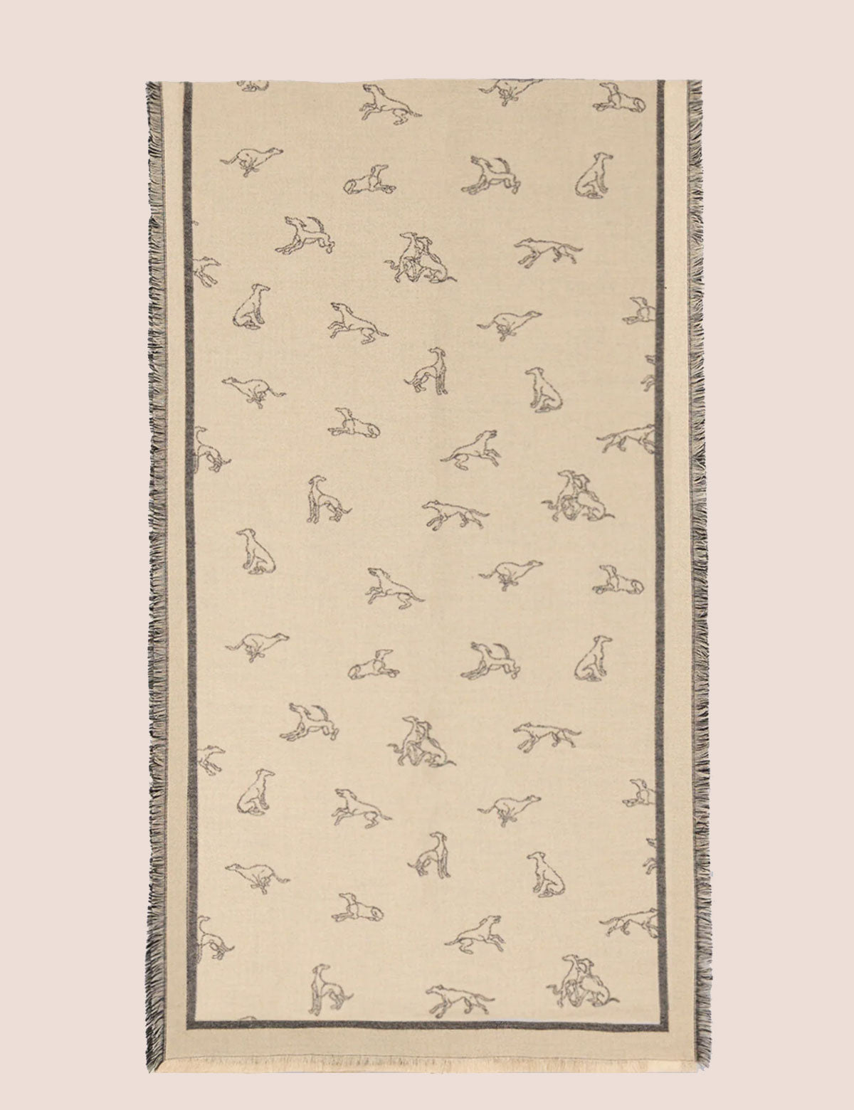 Trussardi women's scarf with fringes and a greyhound pattern in a viscose blend jacquard.