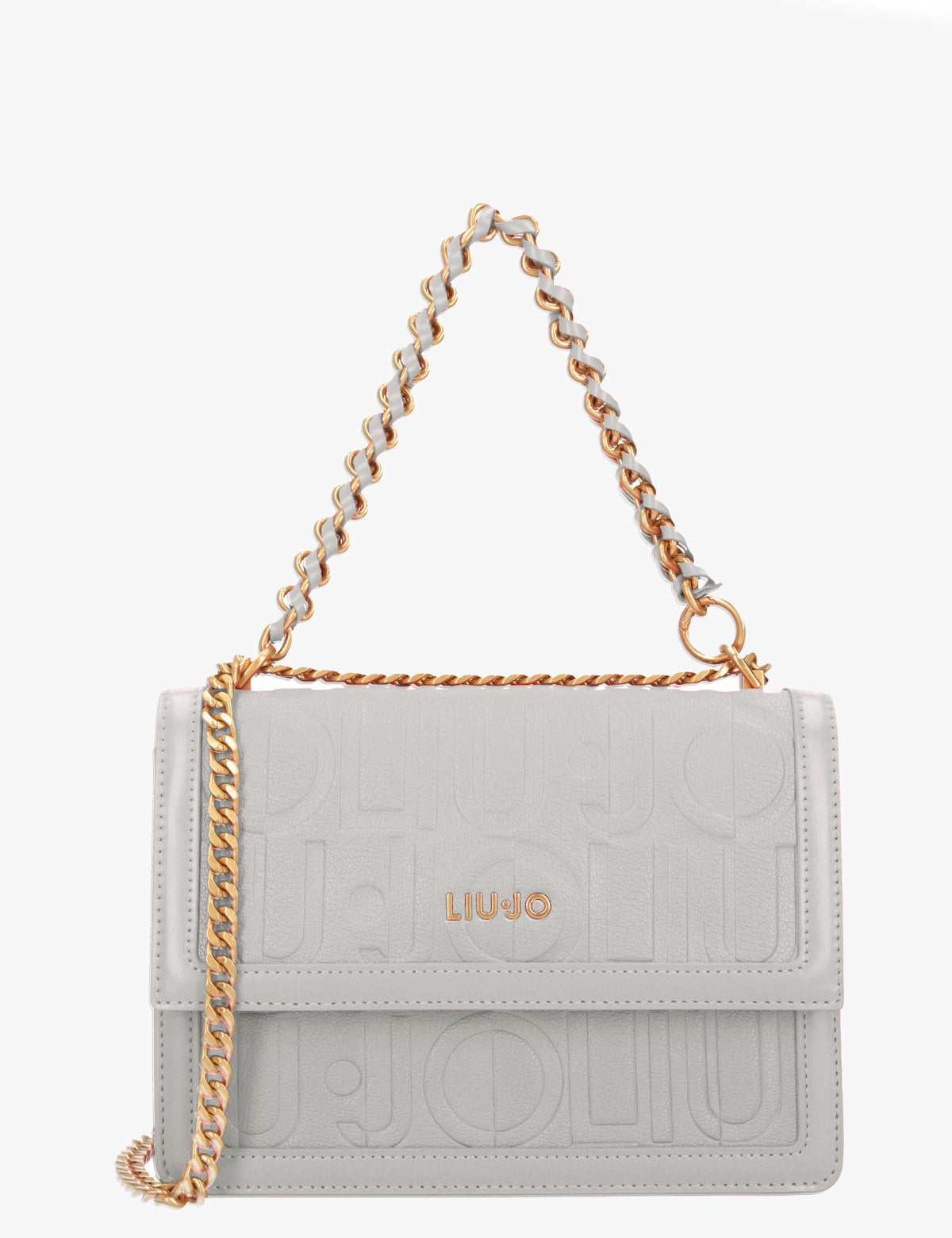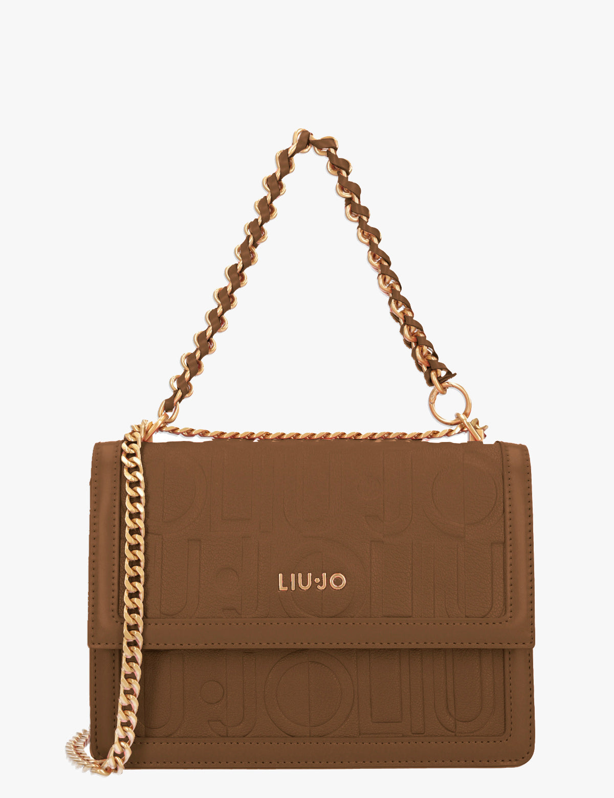 Liu Jo handbag with mobile chain shoulder strap, logo pattern and front flap, elegant and versatile