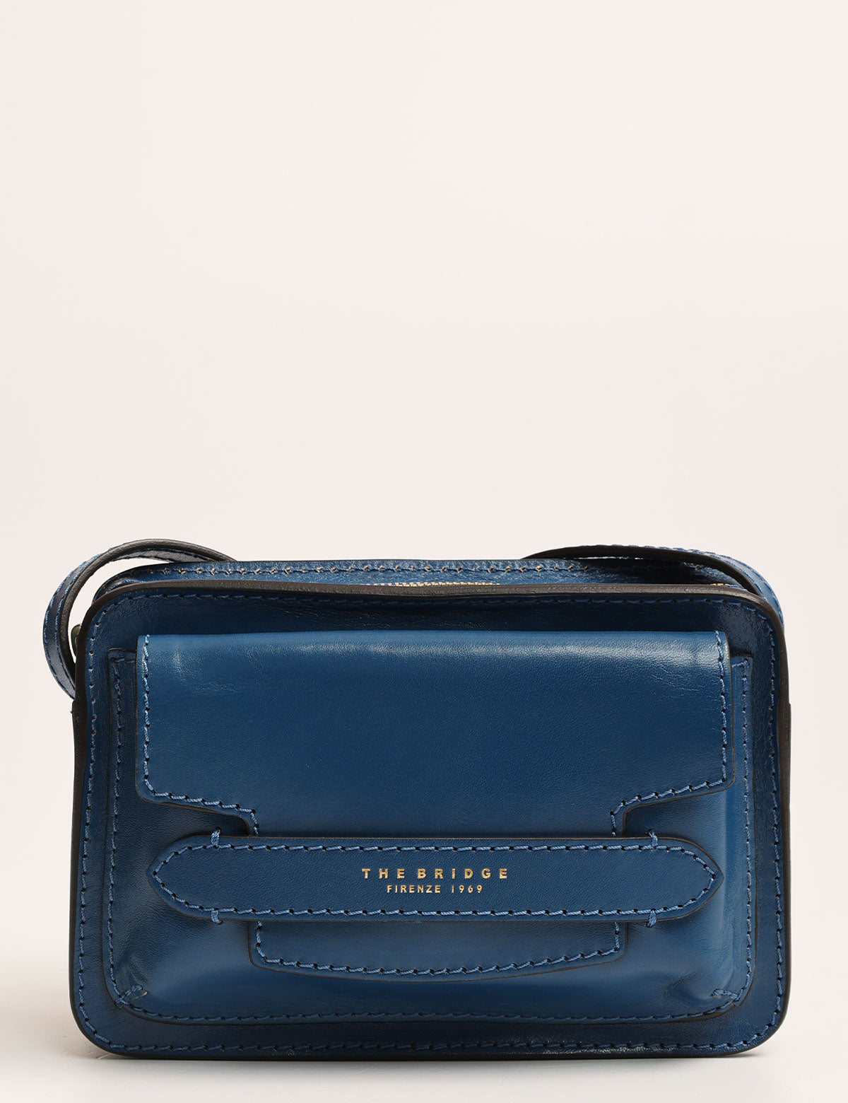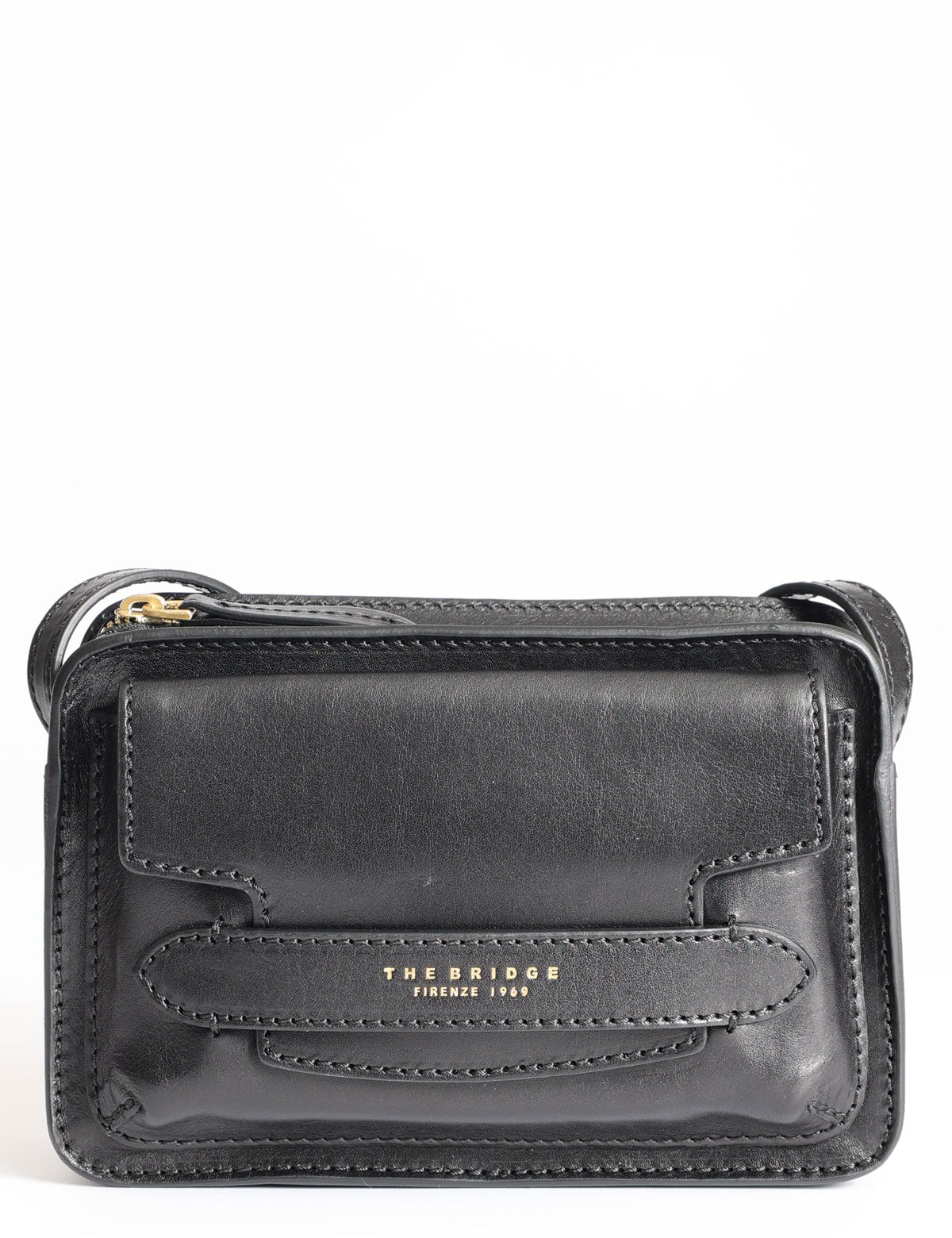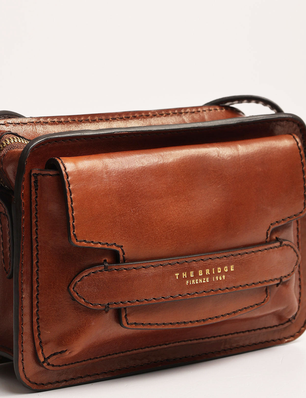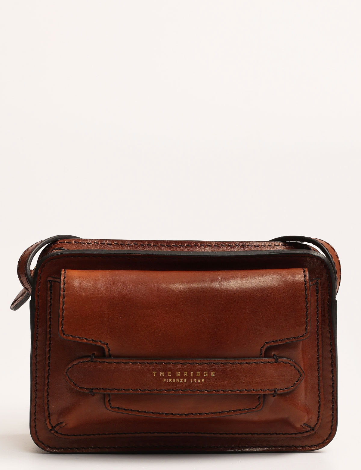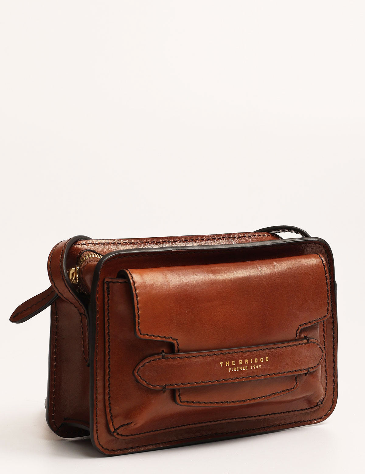 The Bridge women's leather bag, shoulder bag model with camera case design and front pocket with flap