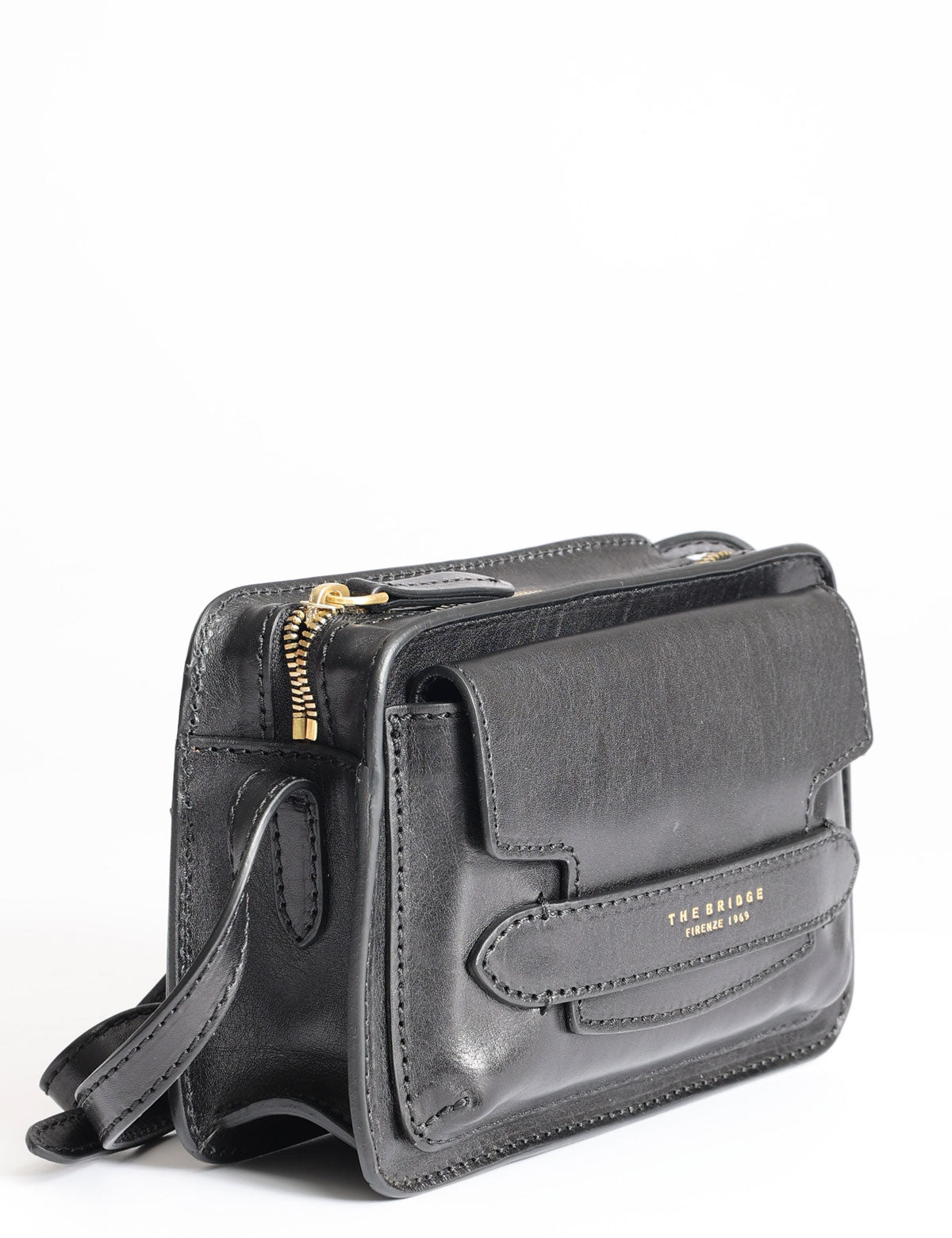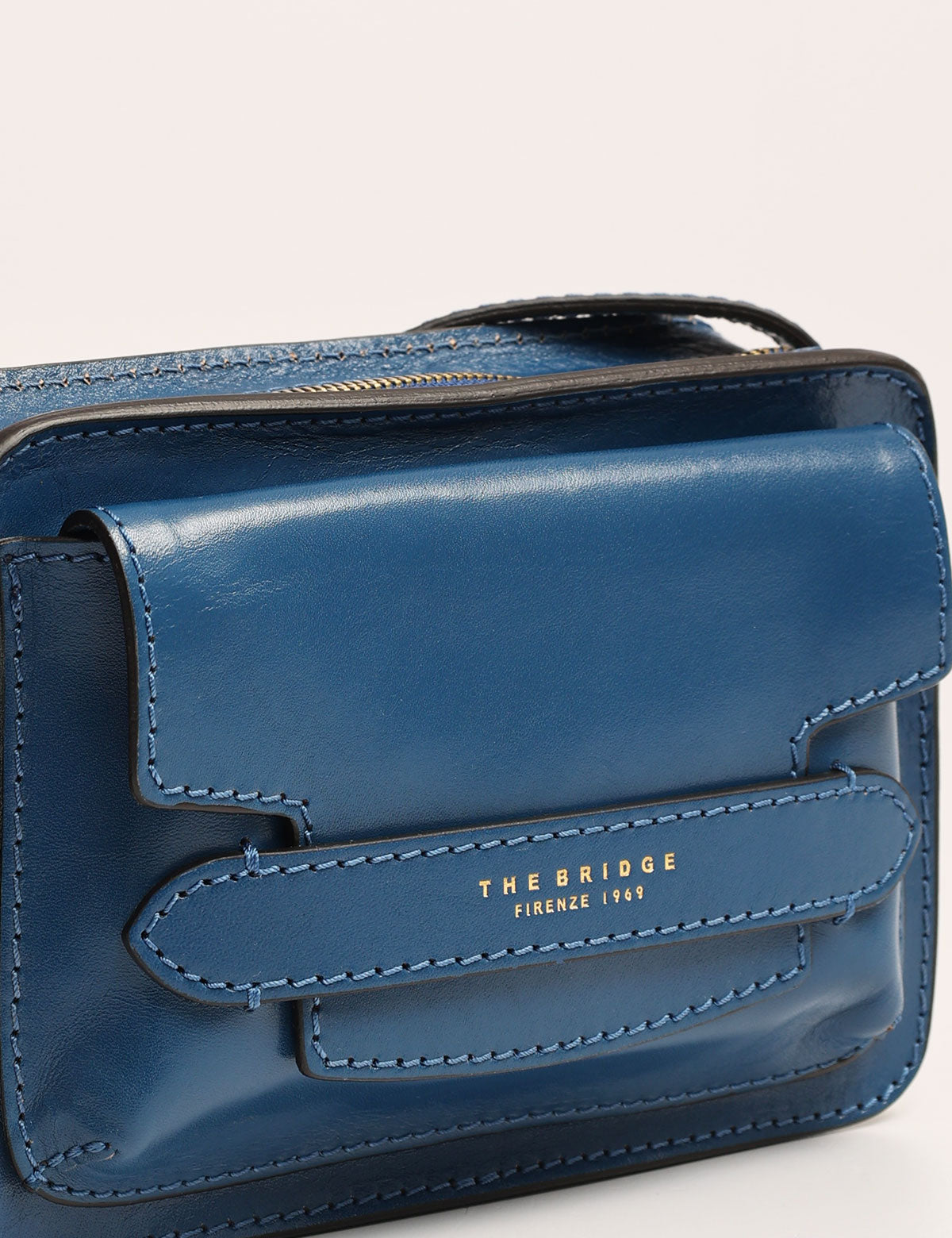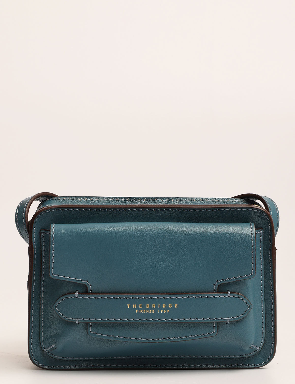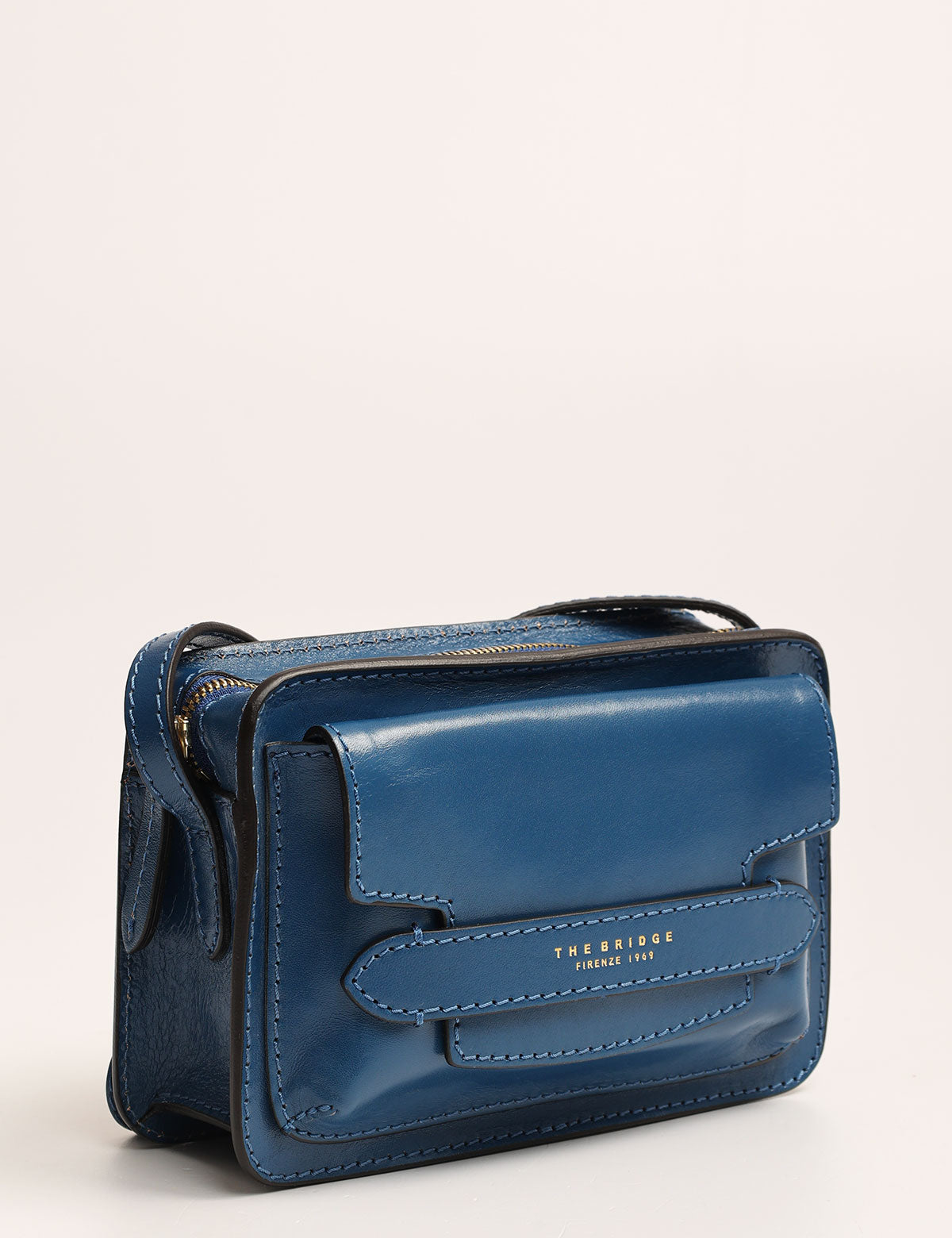 The Bridge women's leather bag, shoulder bag model with camera case design and front pocket with flap