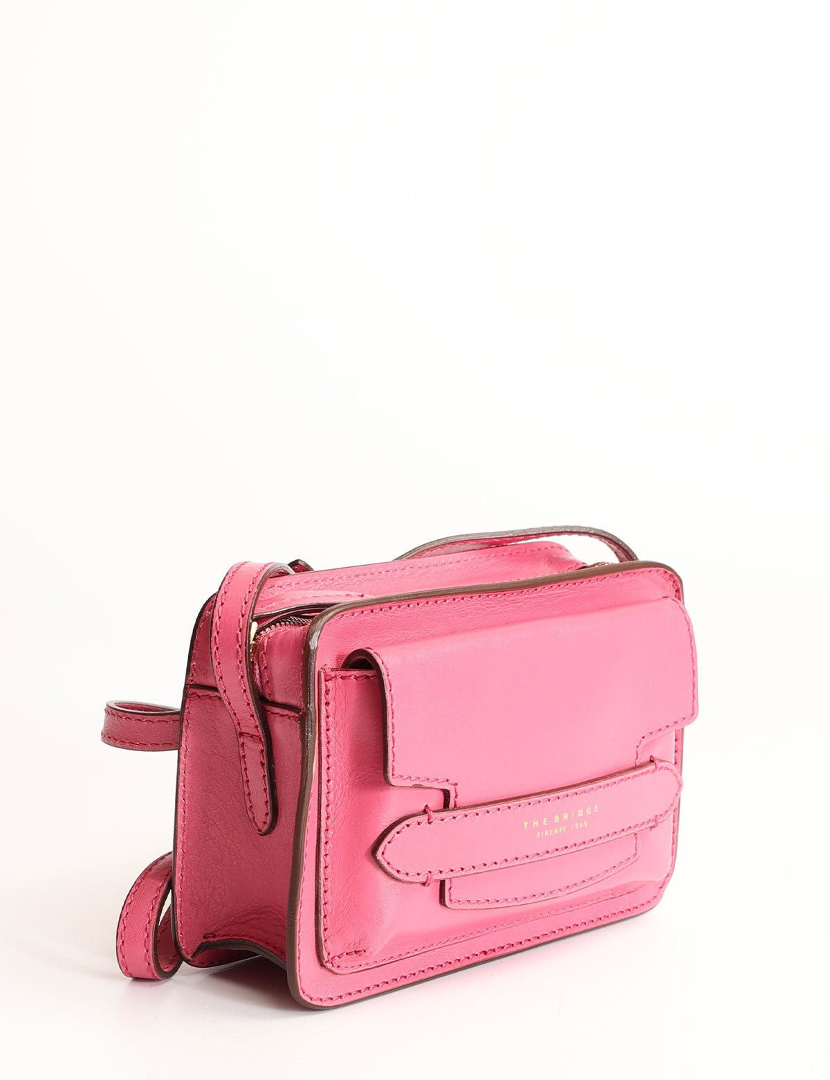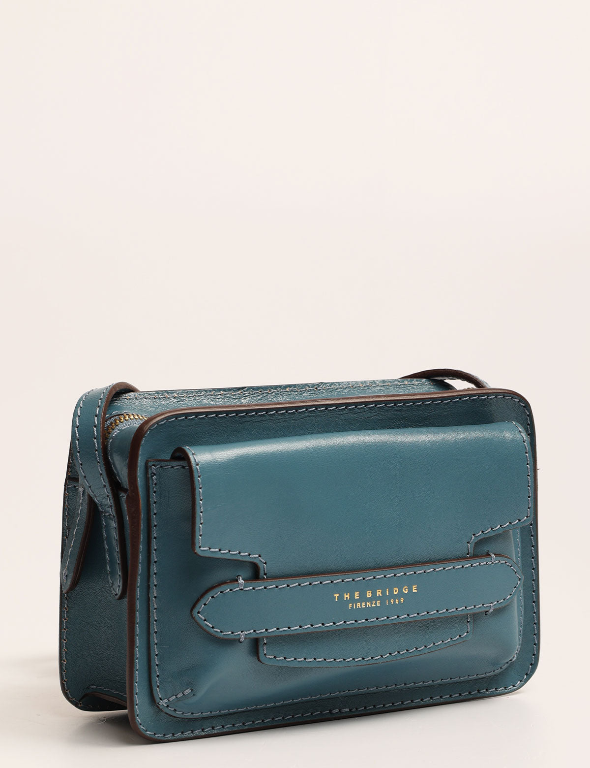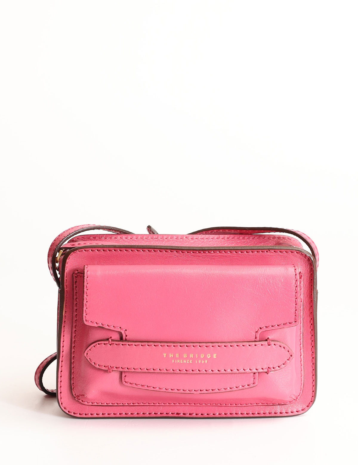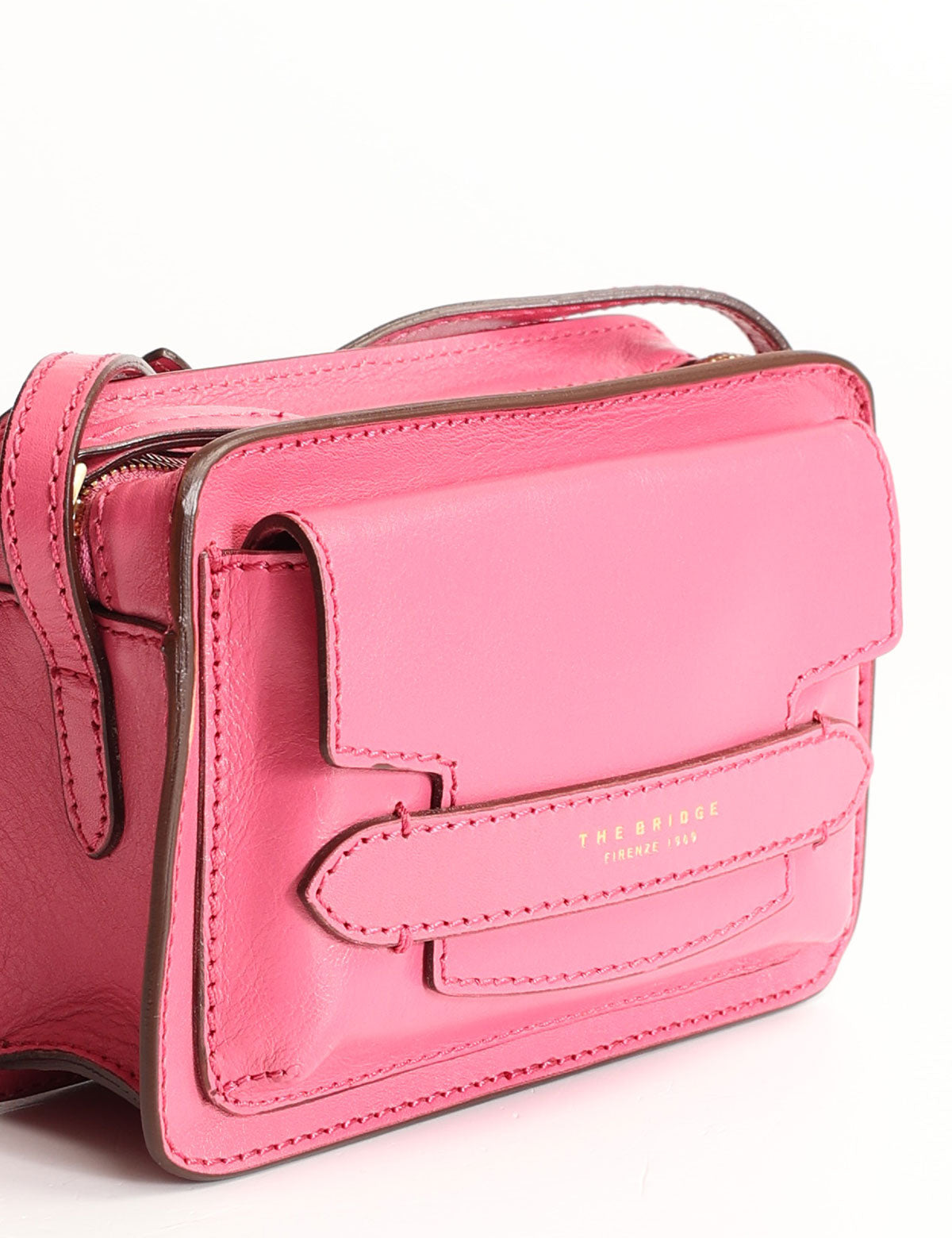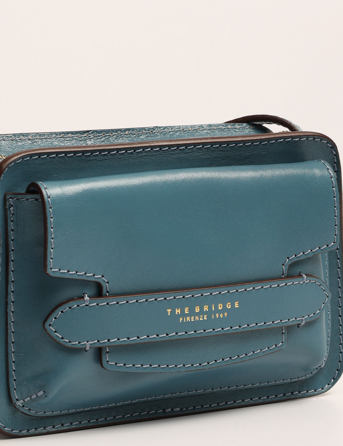 The Bridge women's leather bag, shoulder bag model with camera case design and front pocket with flap