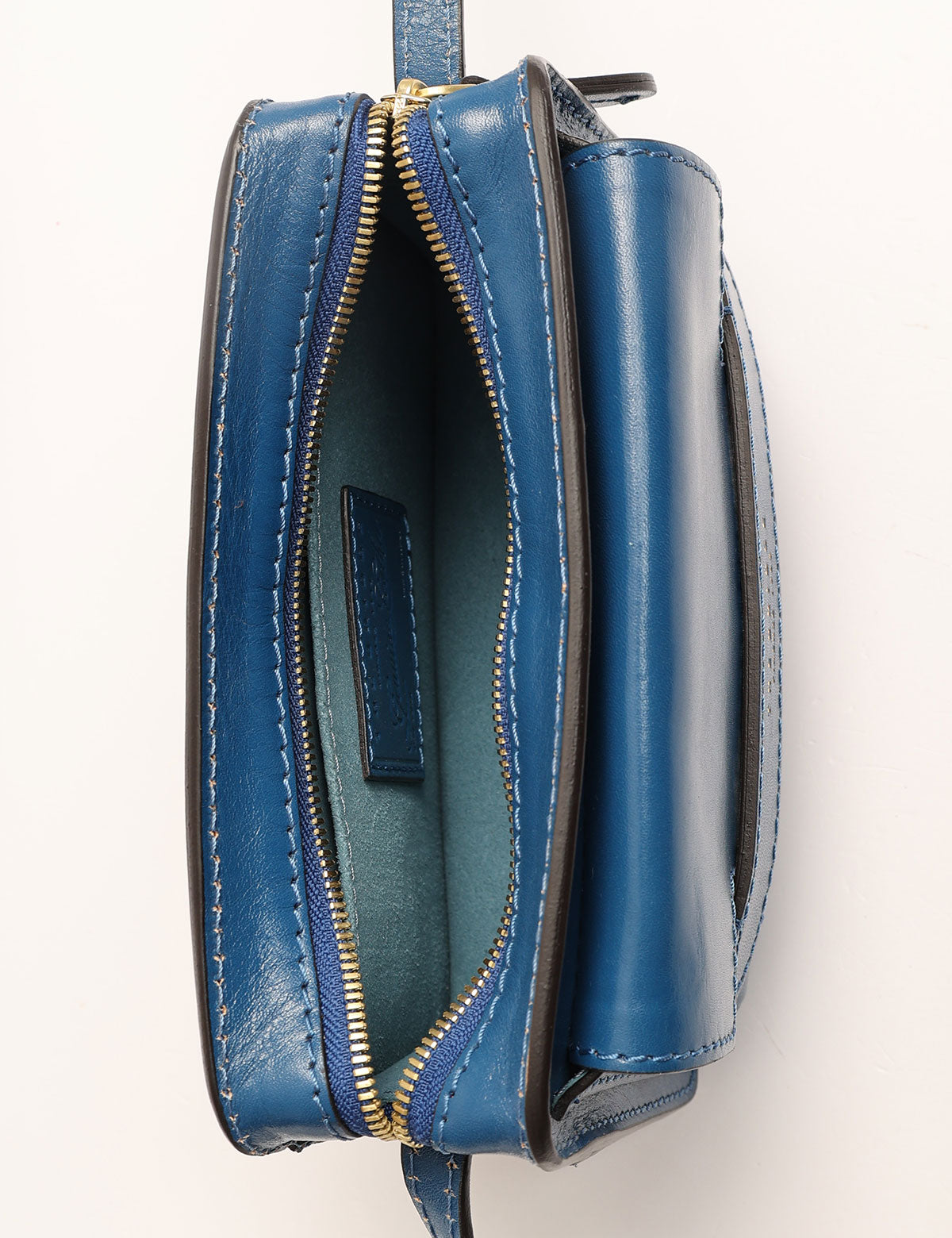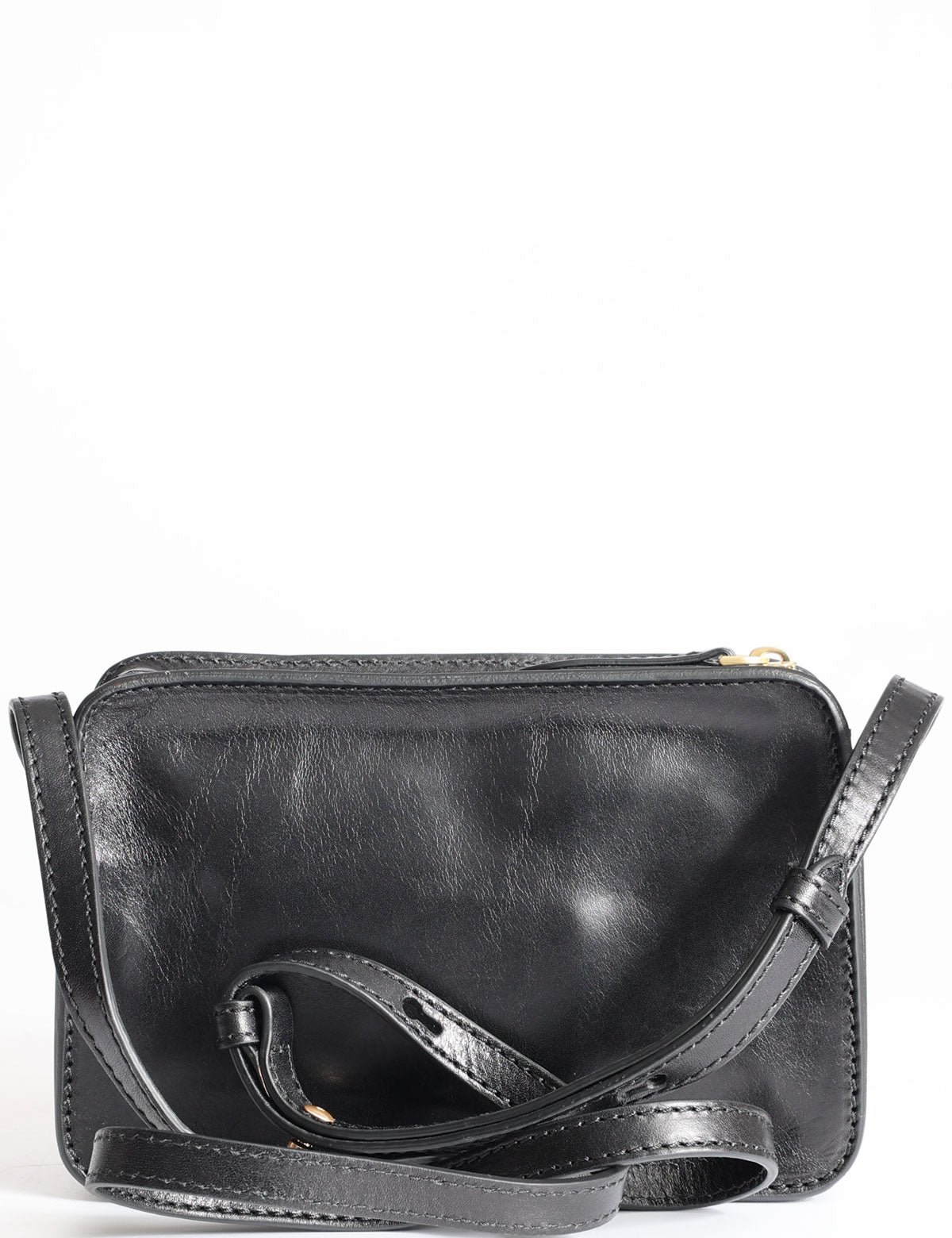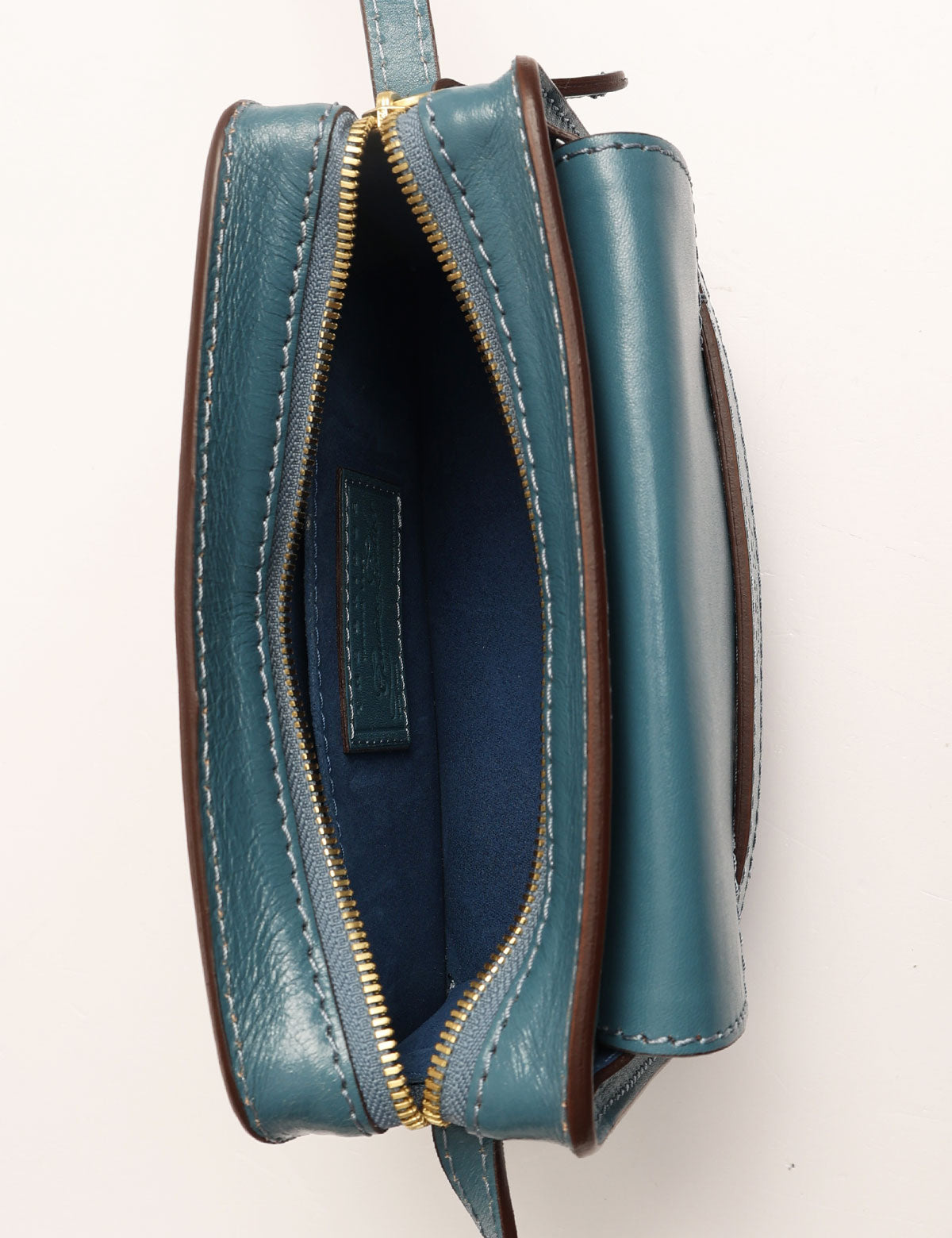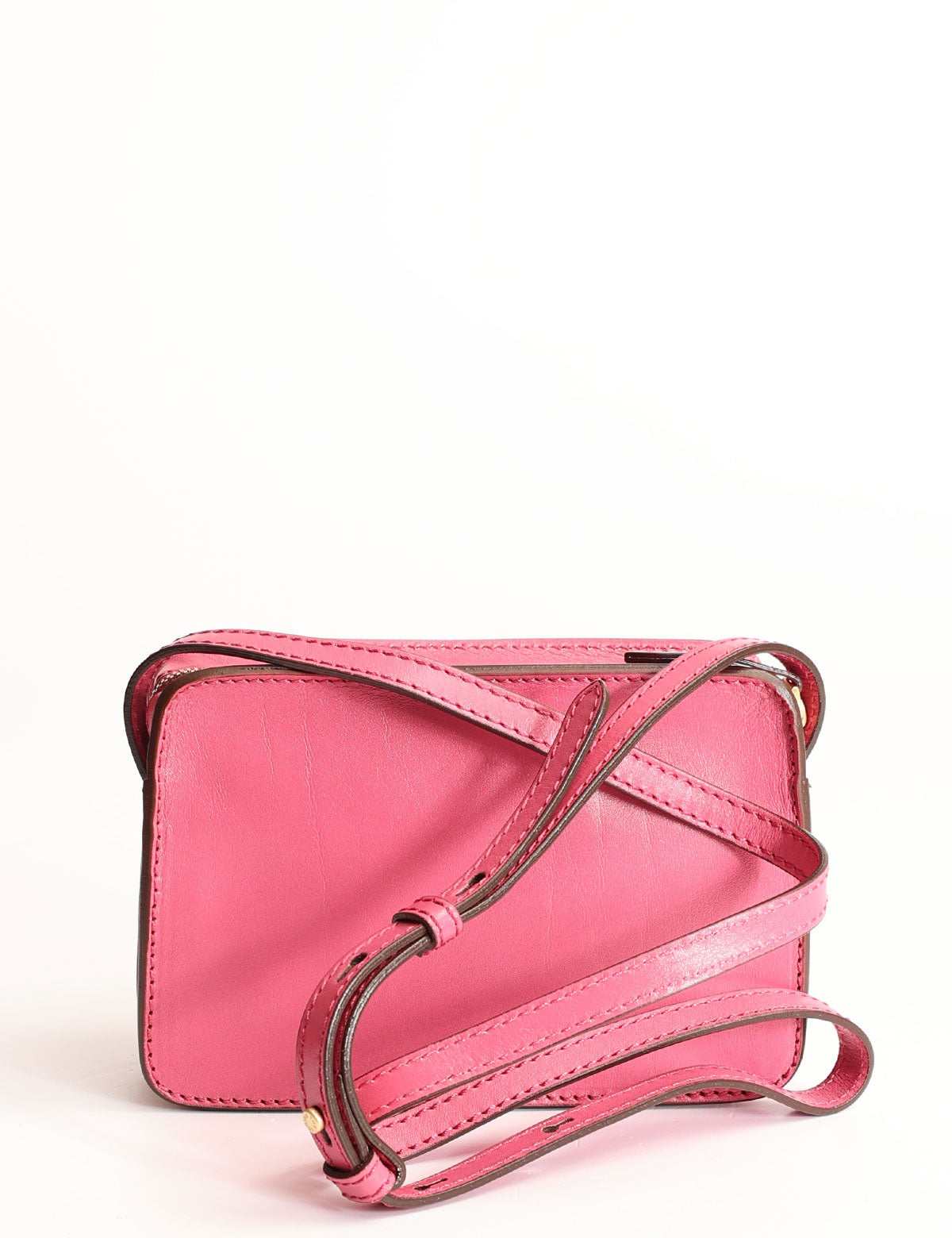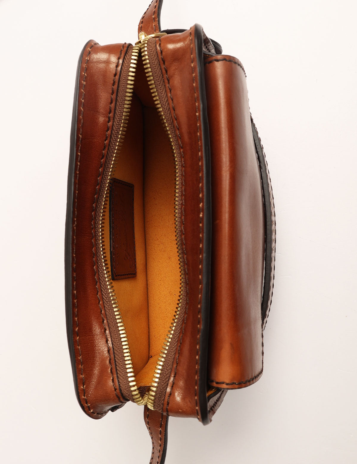 The Bridge women's leather bag, shoulder bag model with camera case design and front pocket with flap