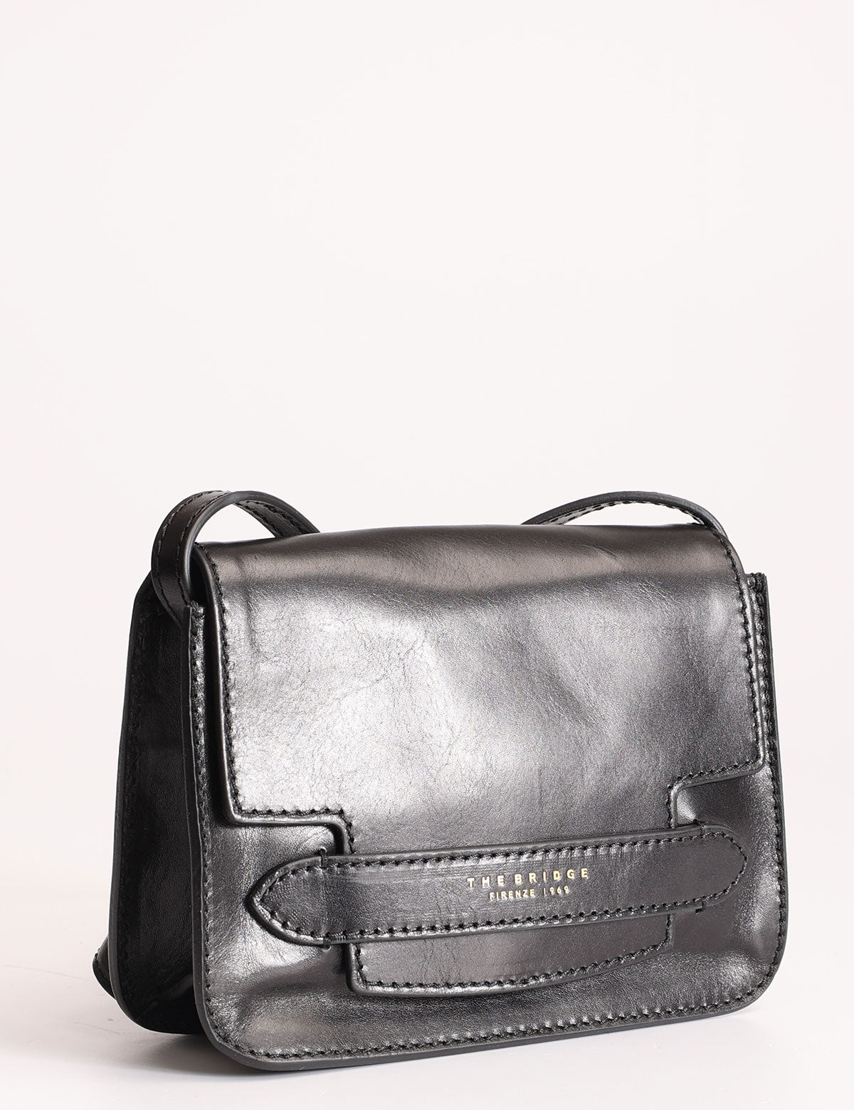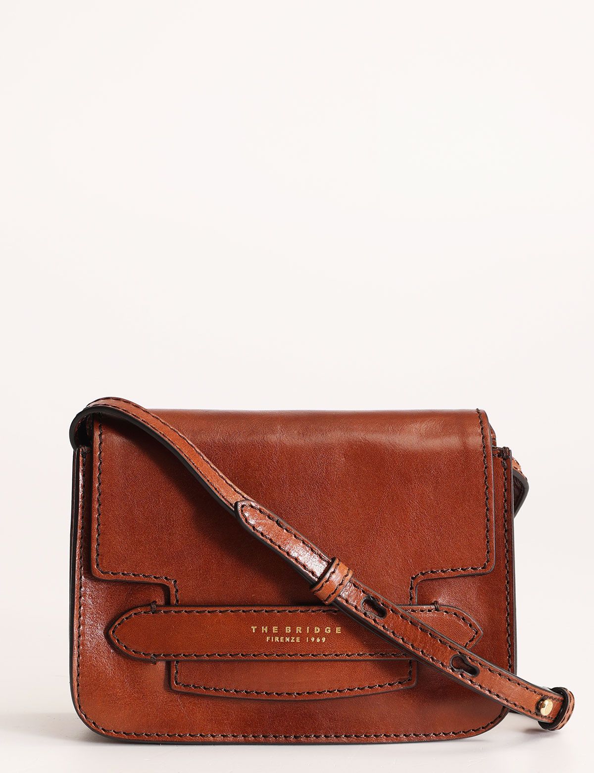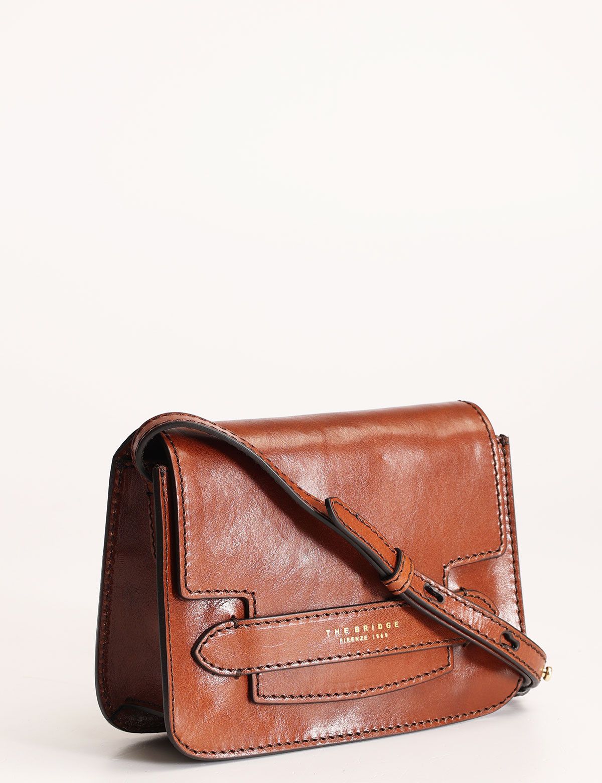 The Bridge women's shoulder bag made of leather, with front flap and adjustable shoulder strap