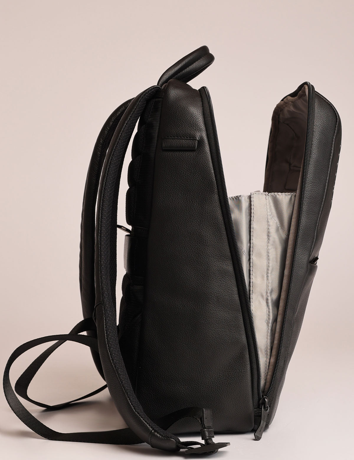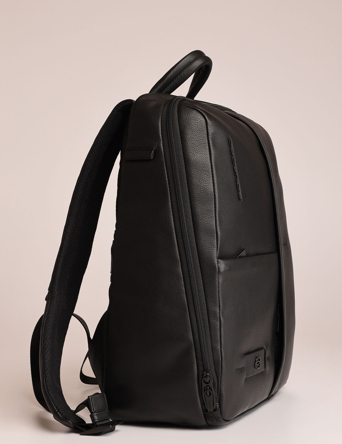 Piquadro business backpack made of leather, 13" laptop model with shock-absorber compartment and safety system with zip slots