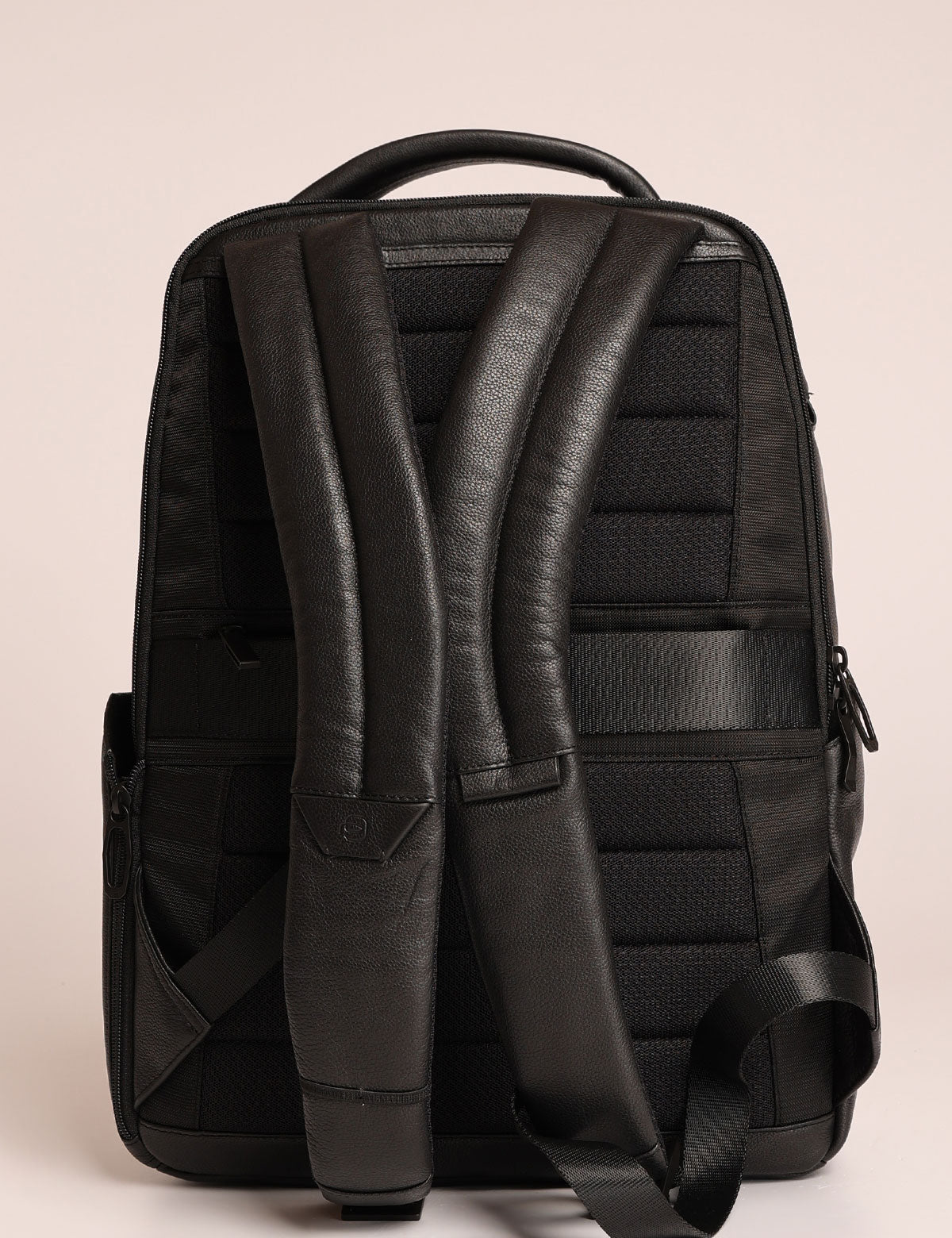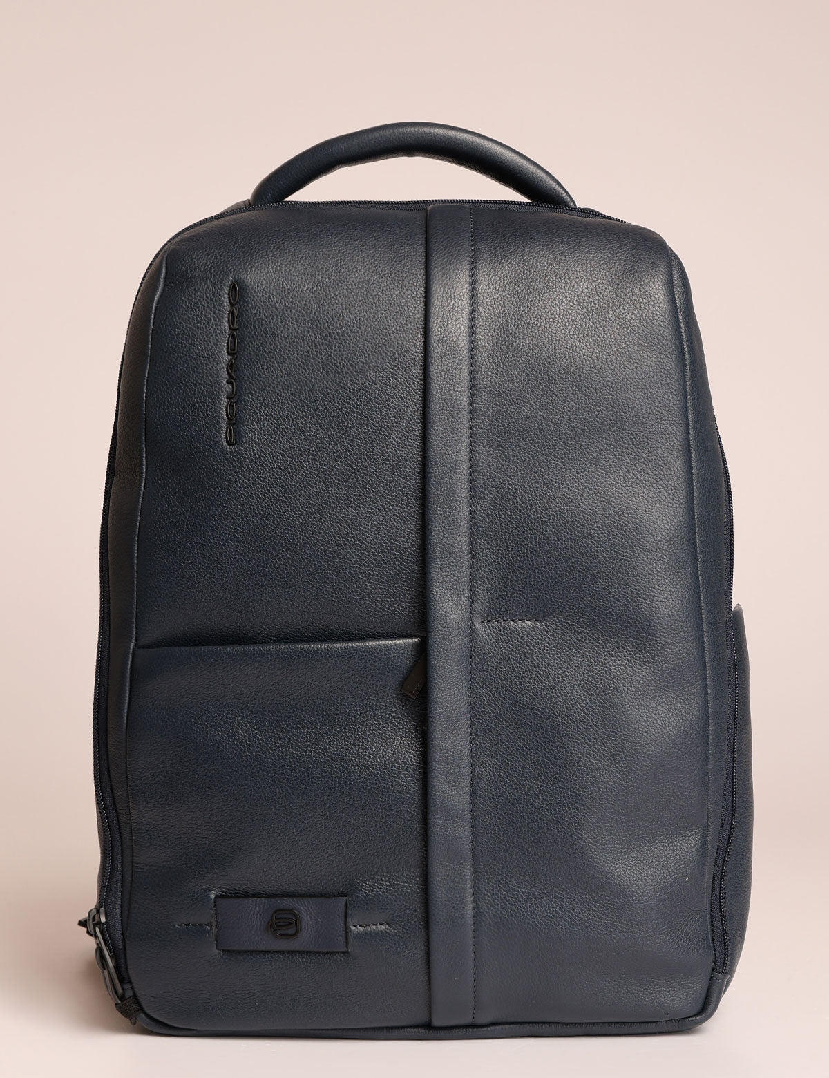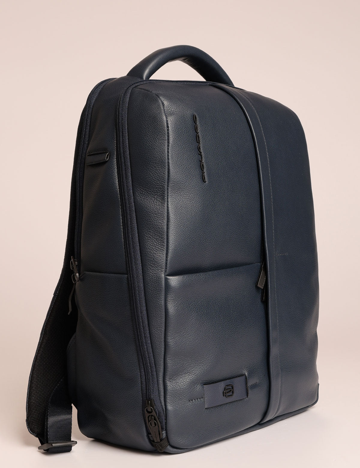 Zaino business Piquadro realizzato in pelle, modello porta pc 14" con scomparto antiurto shock-absorber e sistema di sicurezza con asole per zip