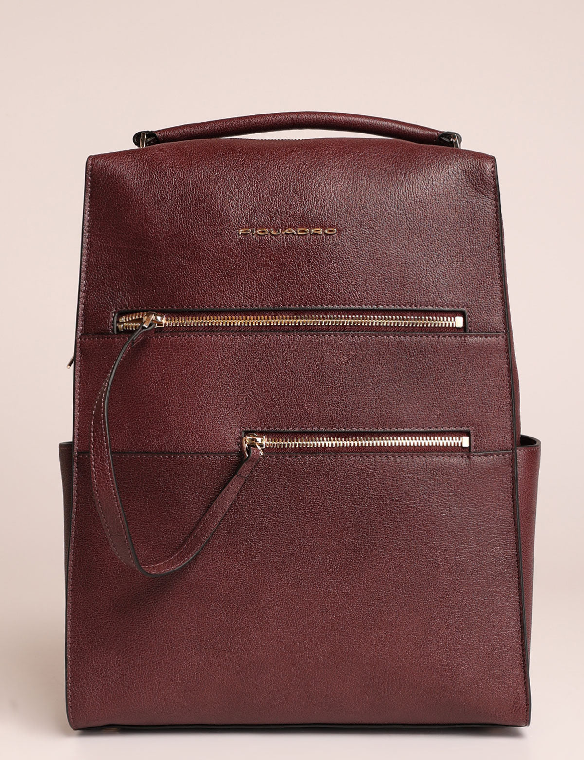 Zaino da donna Piquadro realizzato in pelle, modello perfetto per il business e il tempo libero grazie allo scomparto porta computer e ai dettagli frontali delle tasche