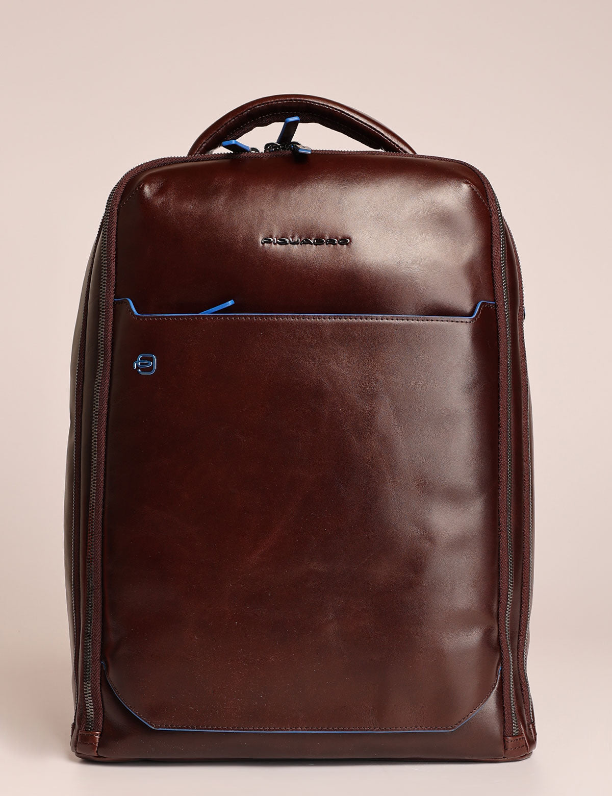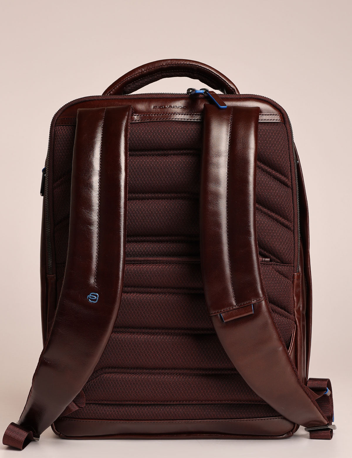 Piquadro travel backpack made of leather, fast-check model with independent compartment for laptops up to 15.6 inches