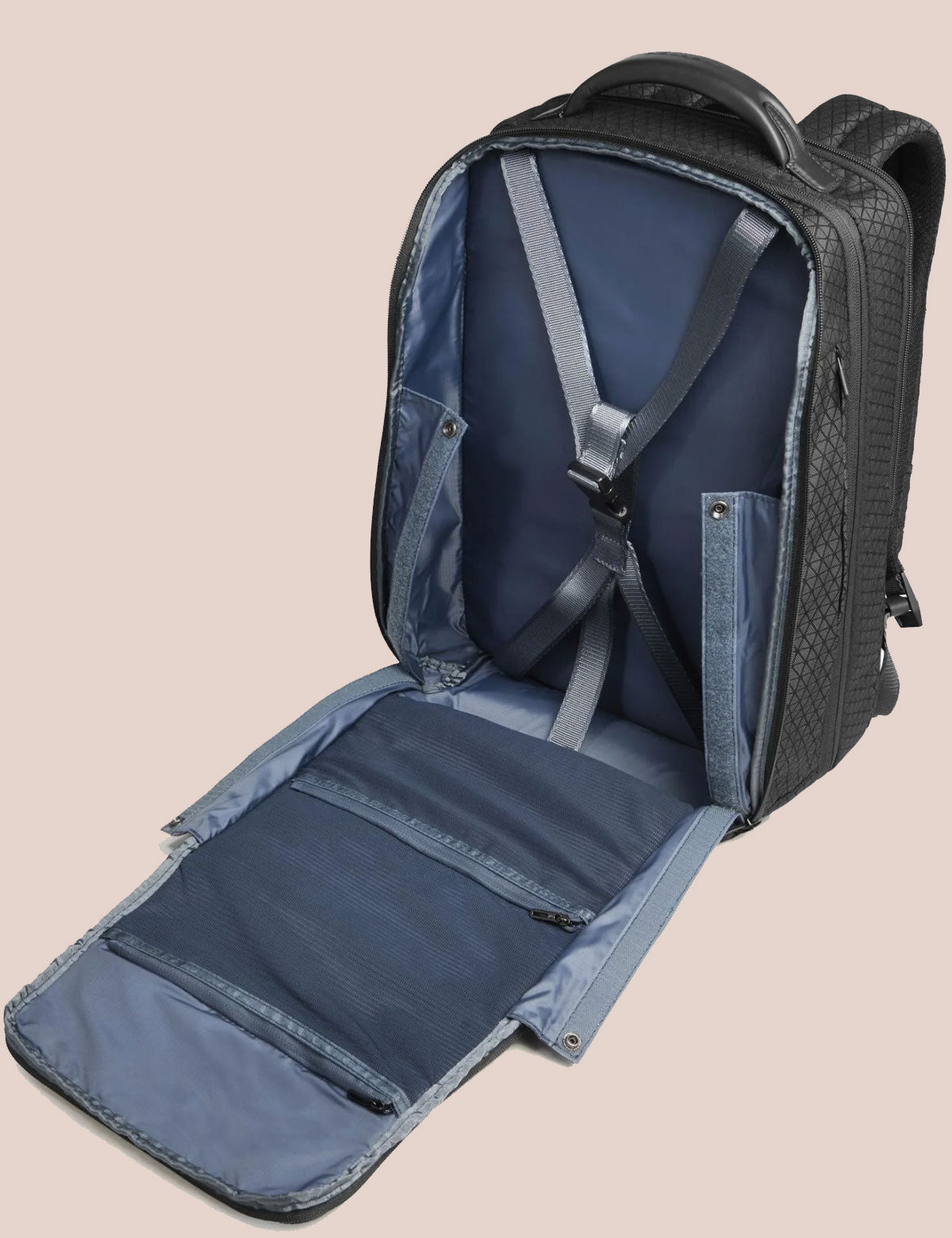 Ispirata alla geometria molecolare del carbonio, la struttura naturale più leggera e resistente al mondo, la collezione Hexagon di Piquadro nasce come un sistema modulare di zaini e accessori ad alte prestazioni, progettato per chi si muove con agilità tra lavoro, viaggi e vita quotidiana. Mediante questa linea, Funzionalità e performance si fondono in ogni dettaglio: sistemi di sicurezza integrati, pannelli organizzativi intelligenti, comparti termoisolati, tasche protettive e accessi rapidi.
