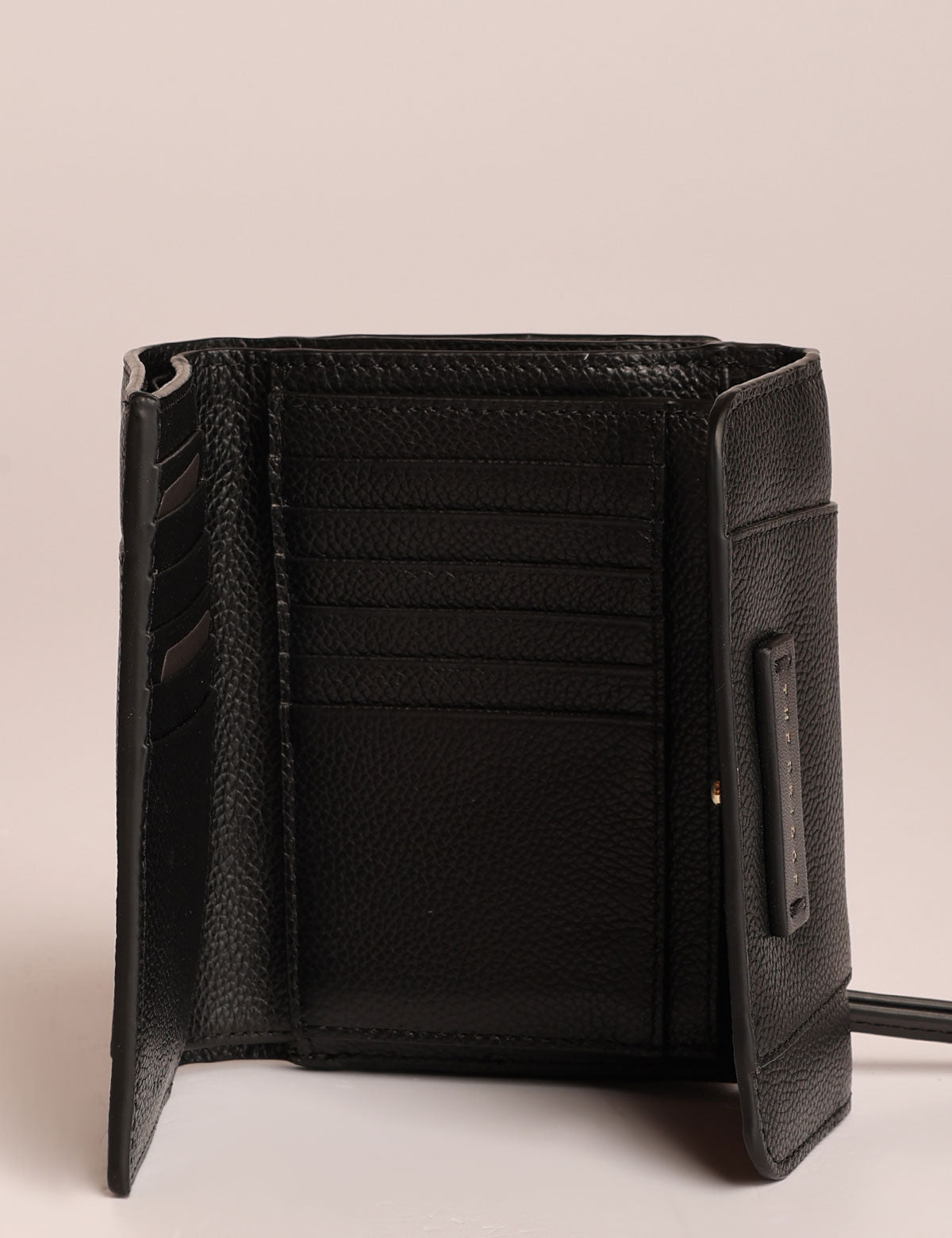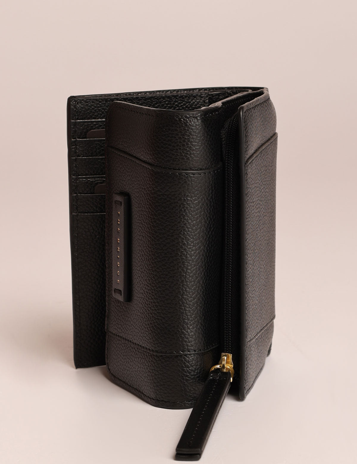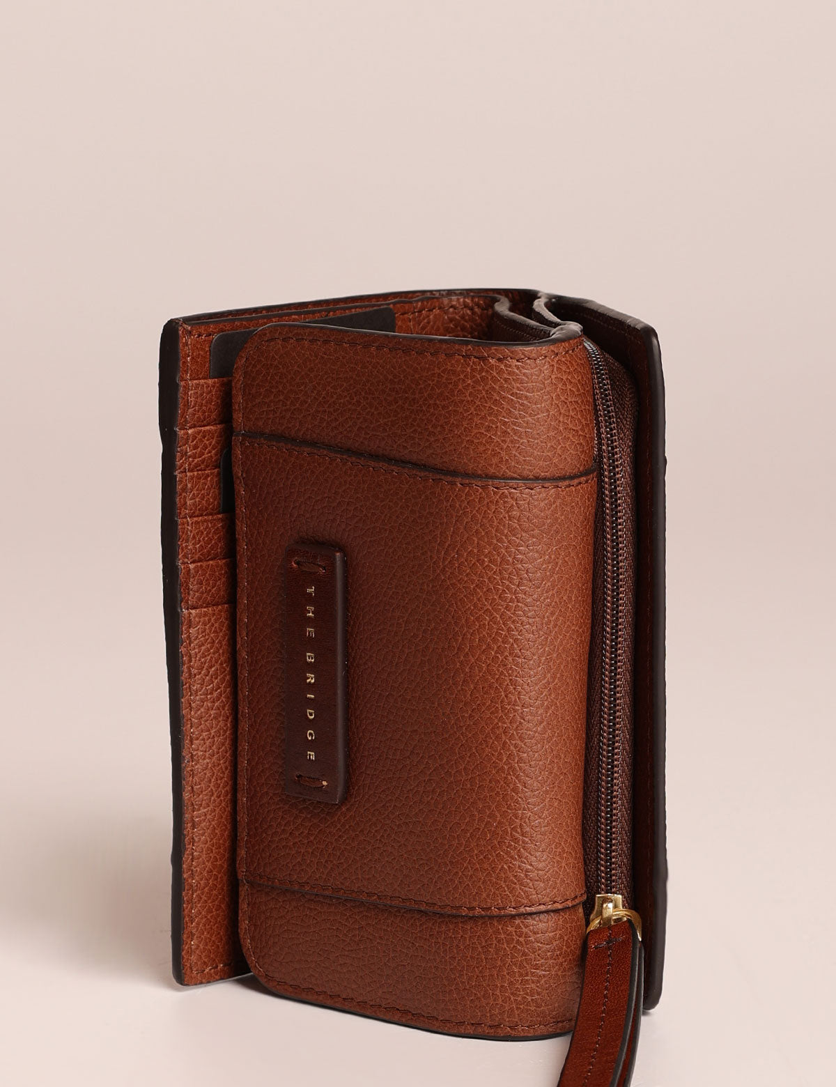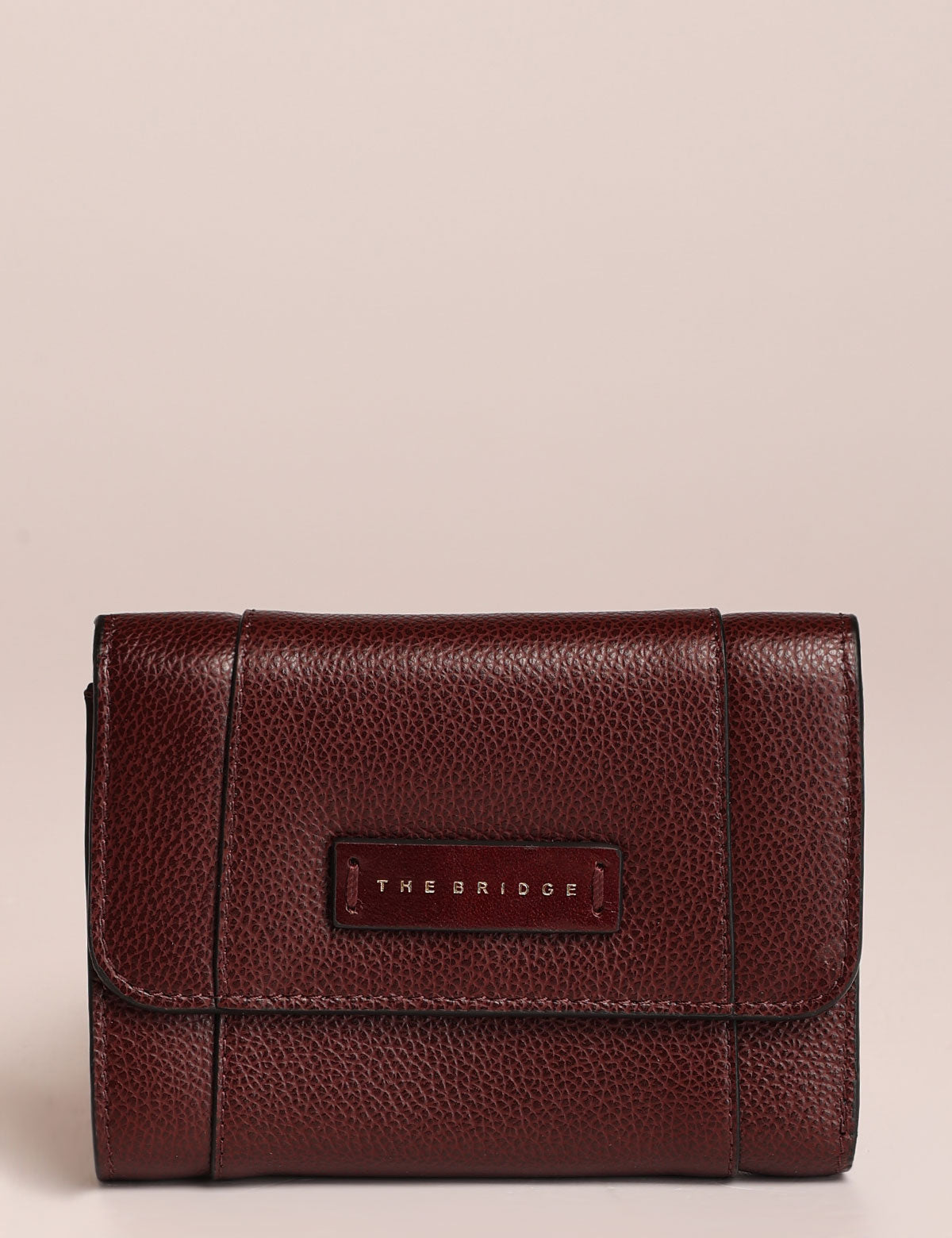 Portafogli da donna The Bridge realizzato in pelle martellata, modello con patta frontale e taschina portamonete con zip