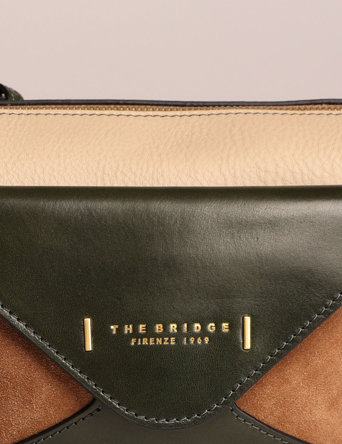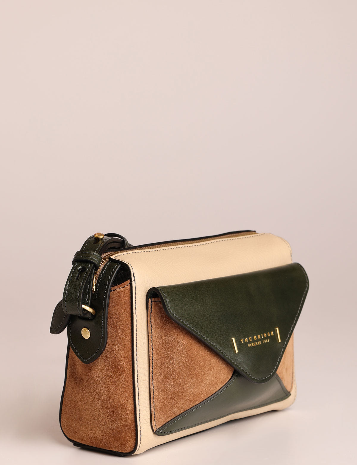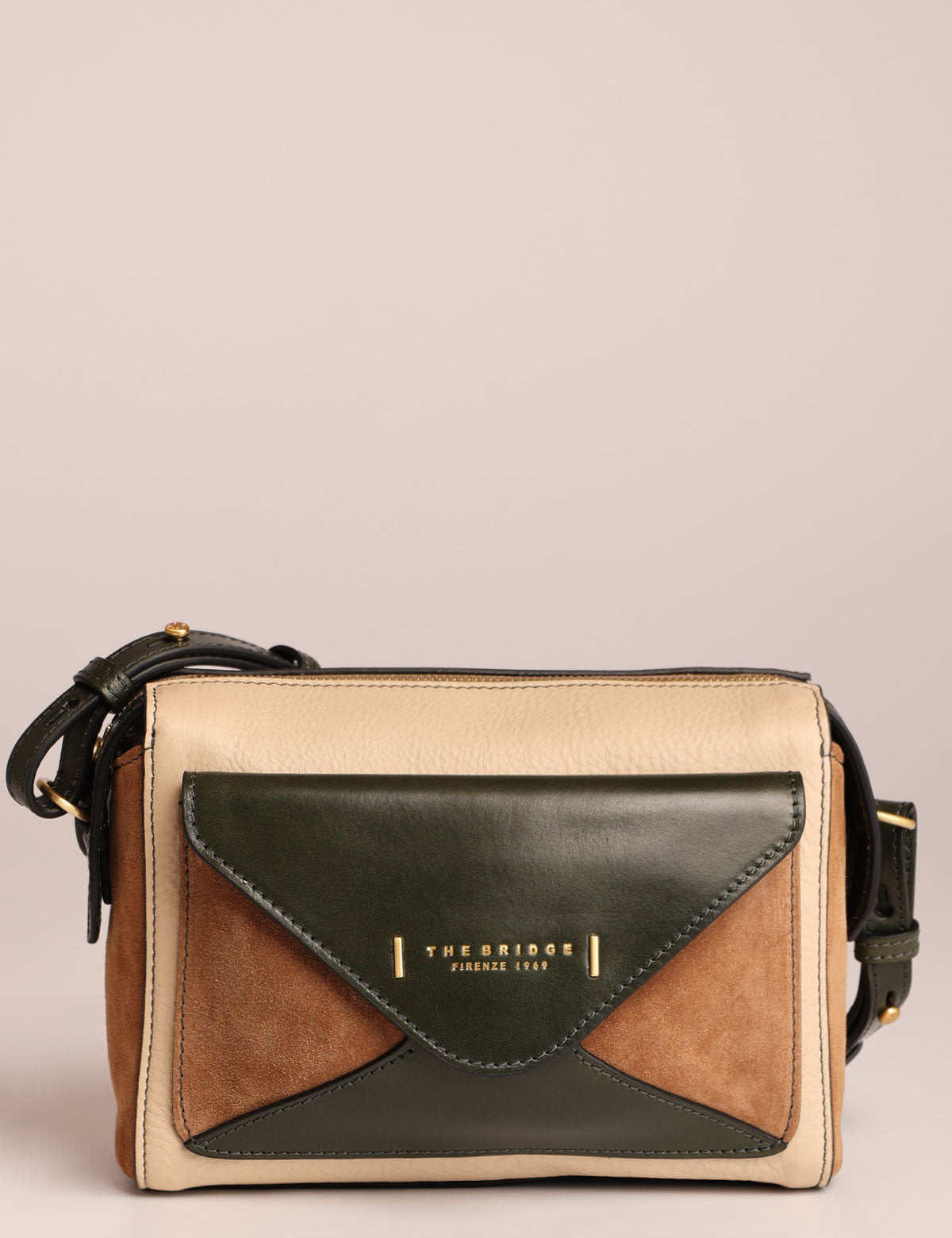 Borsa da donna The Bridge modello tracolla con tasca frontale in stile envelope, realizzata in pregiata pelle liscia e scamosciata