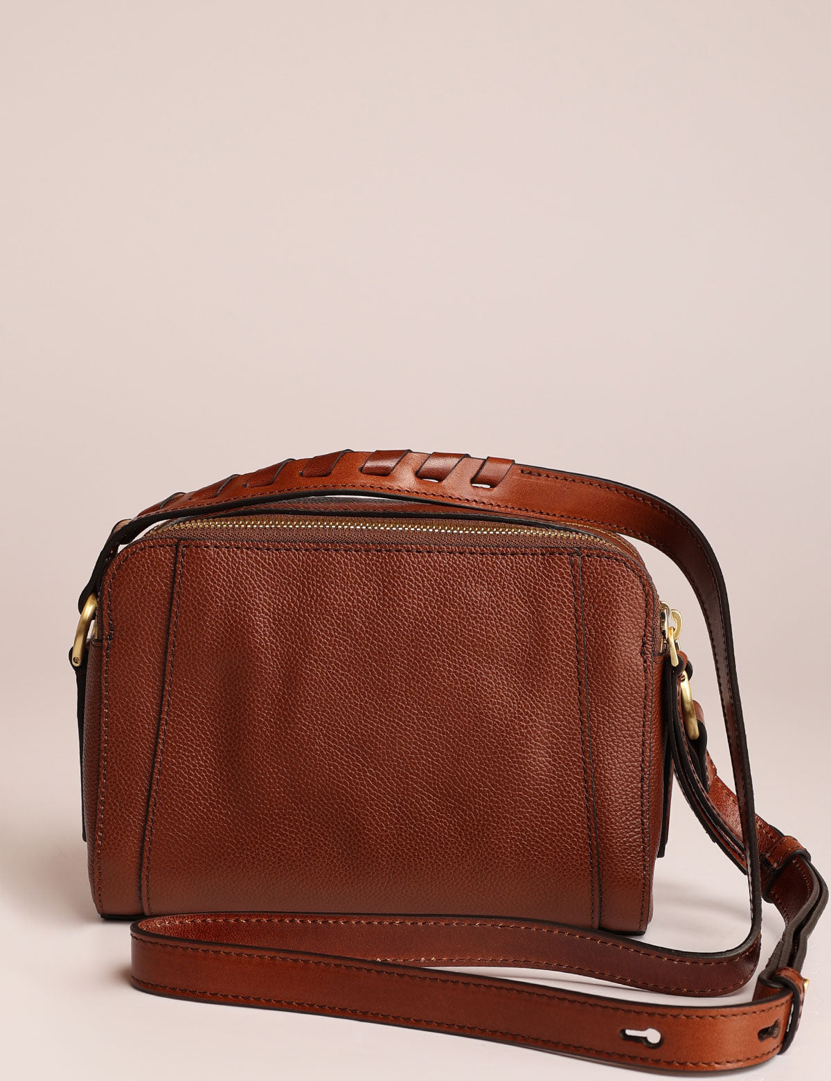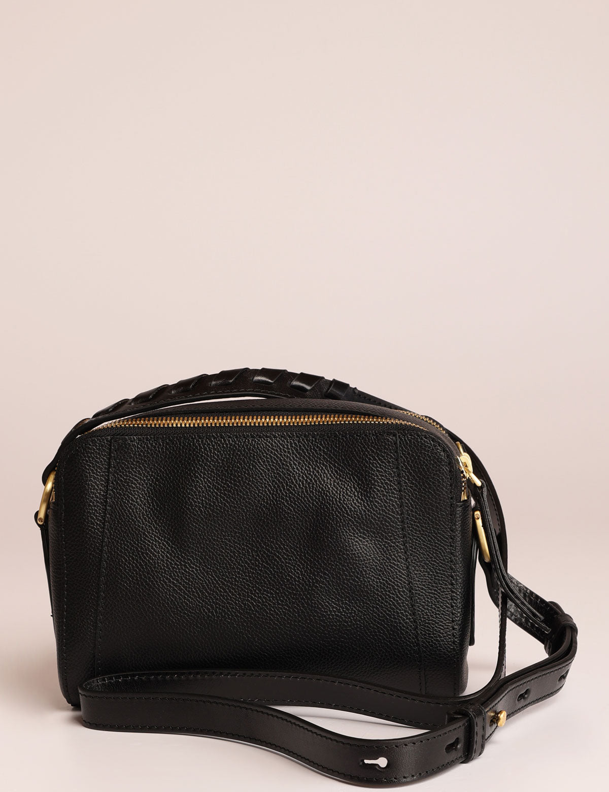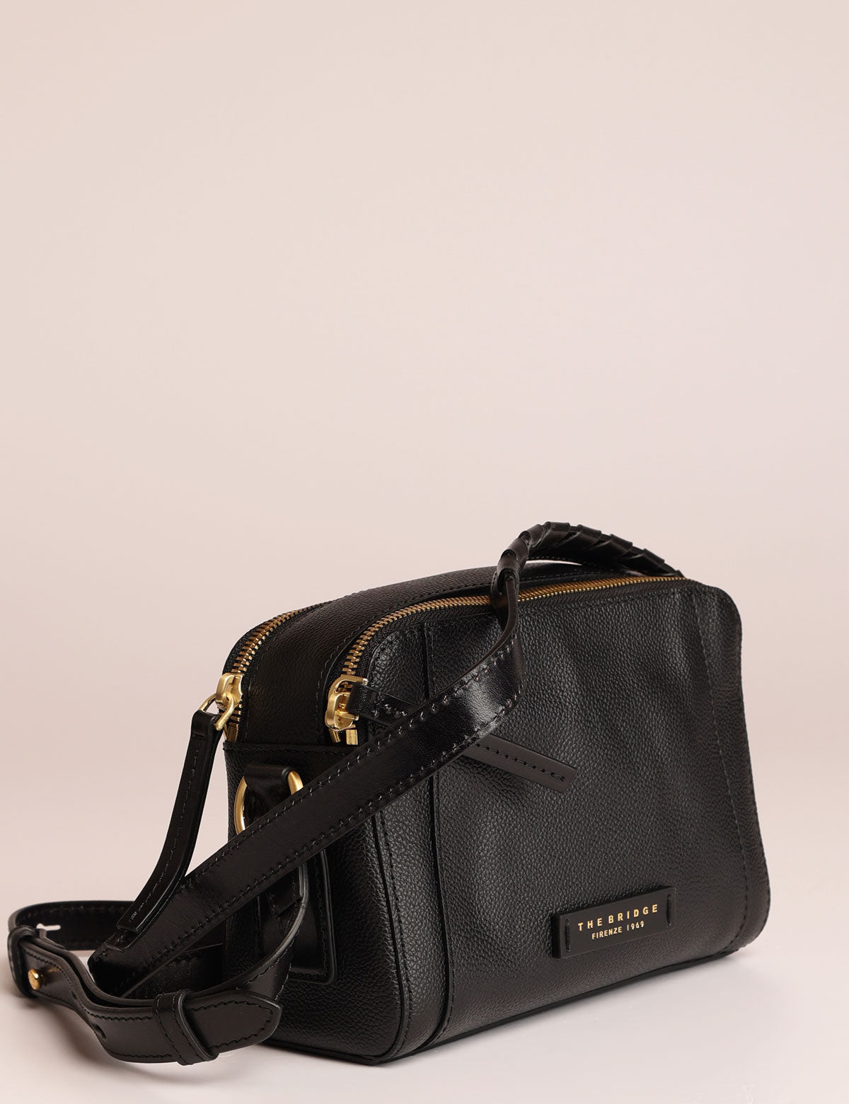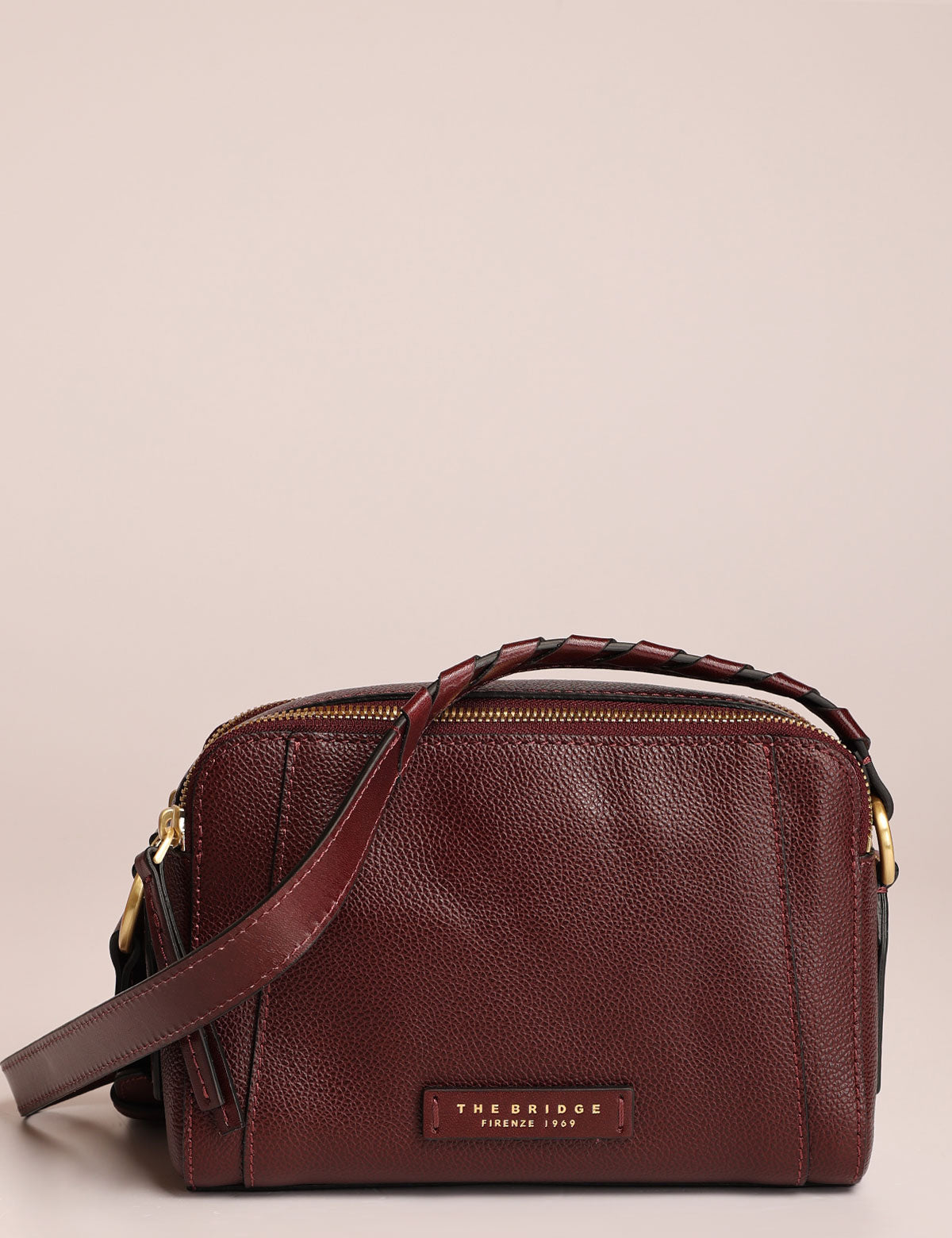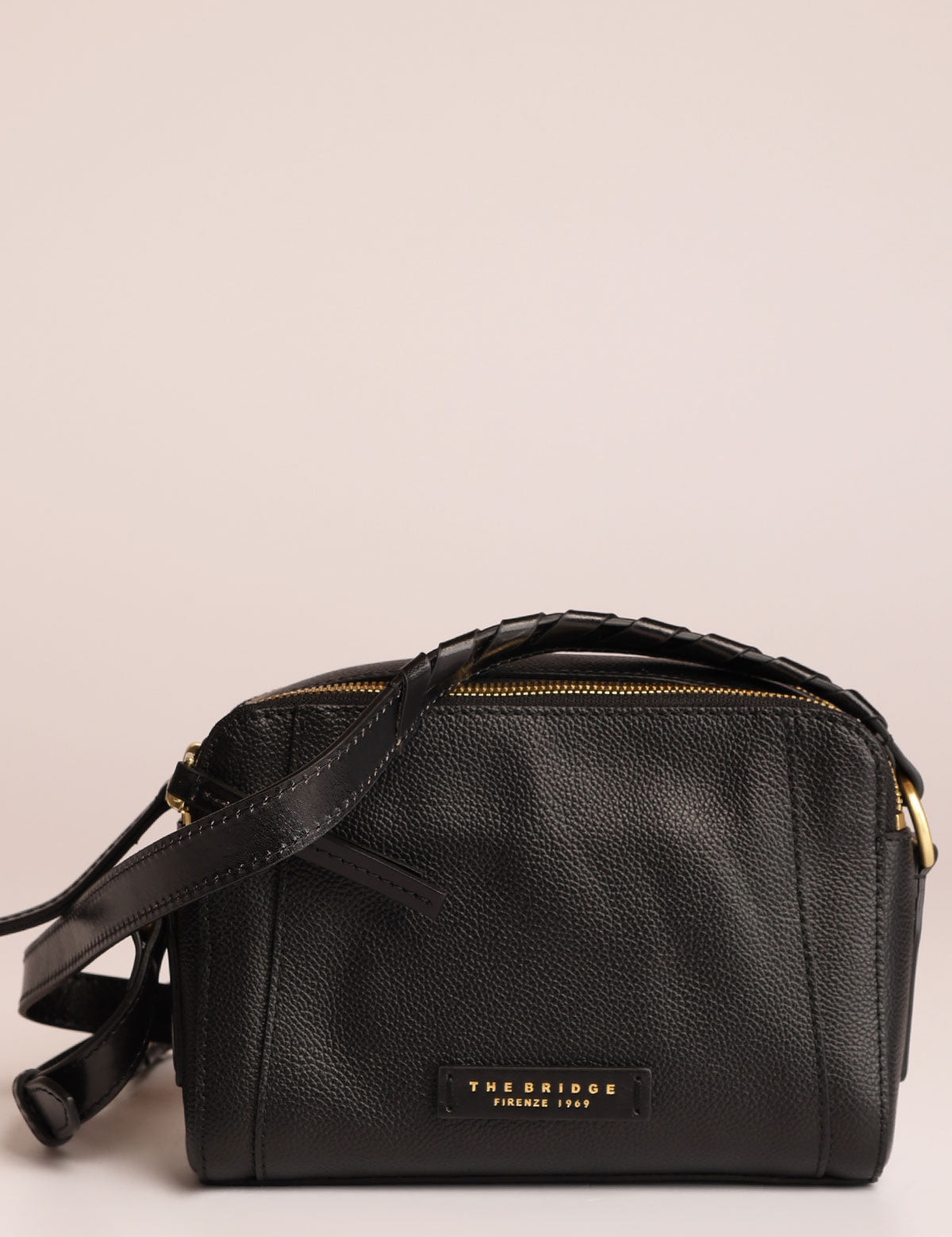 Borsa da donna The Bridge modello camera bag a tracolla con doppia chiusura zip, realizzata in pelle martellata con intrecci
