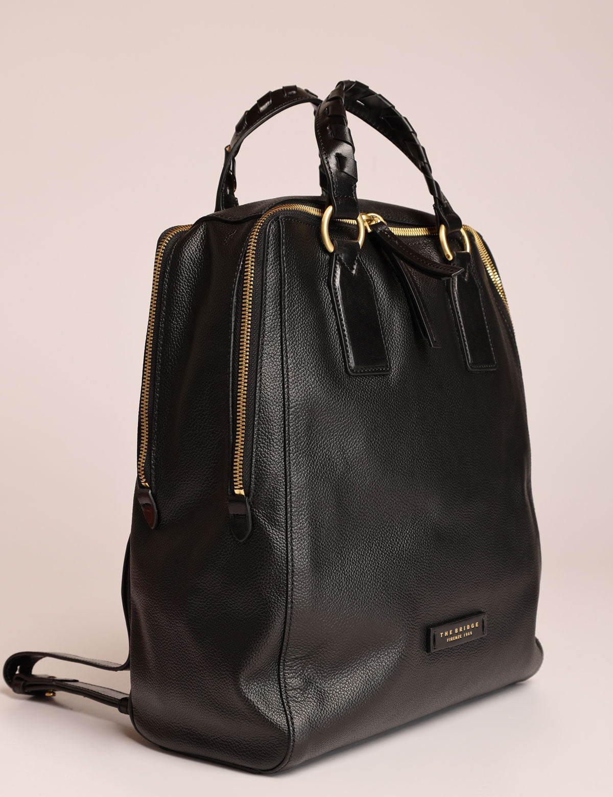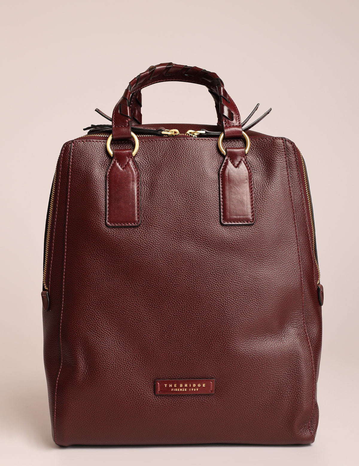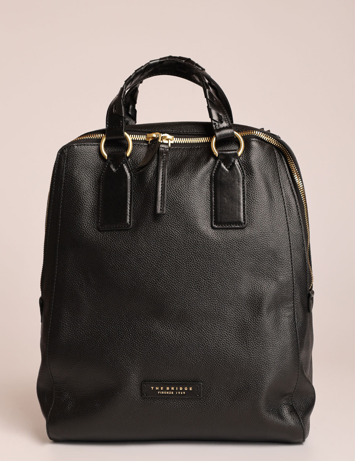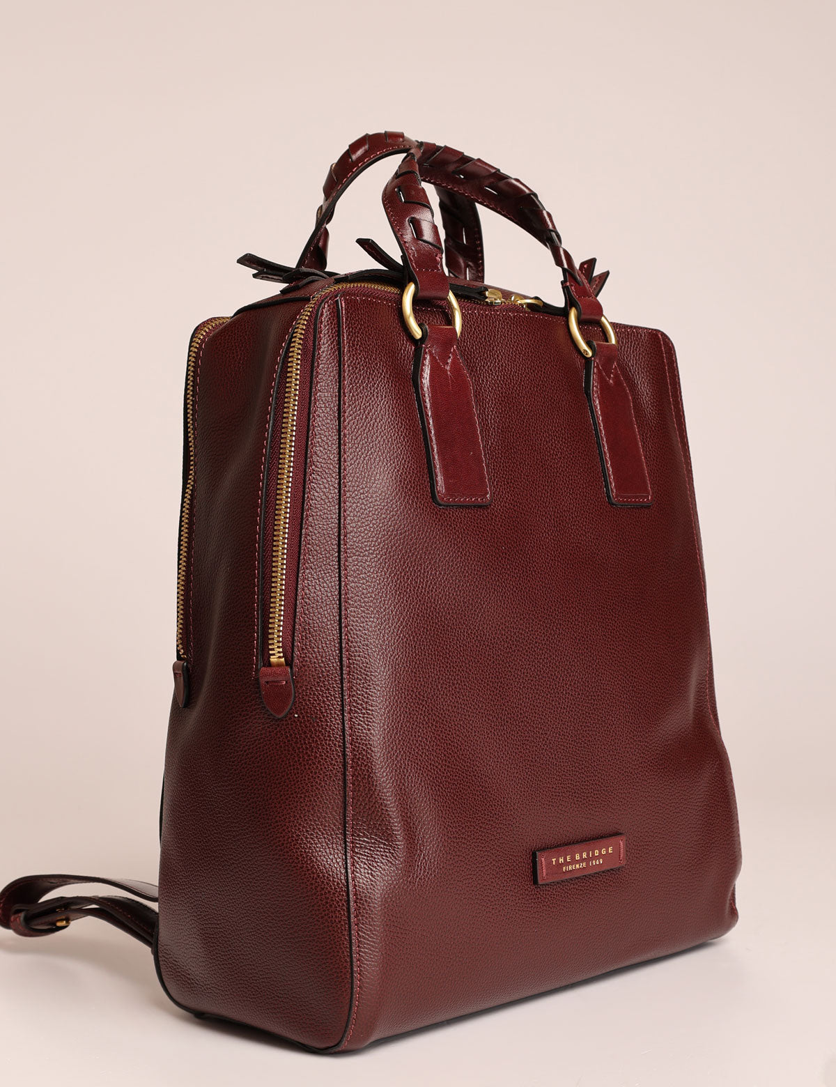 Zaino da donna The Bridge modello in pelle con doppia apertura zip e dettagli intrecciati